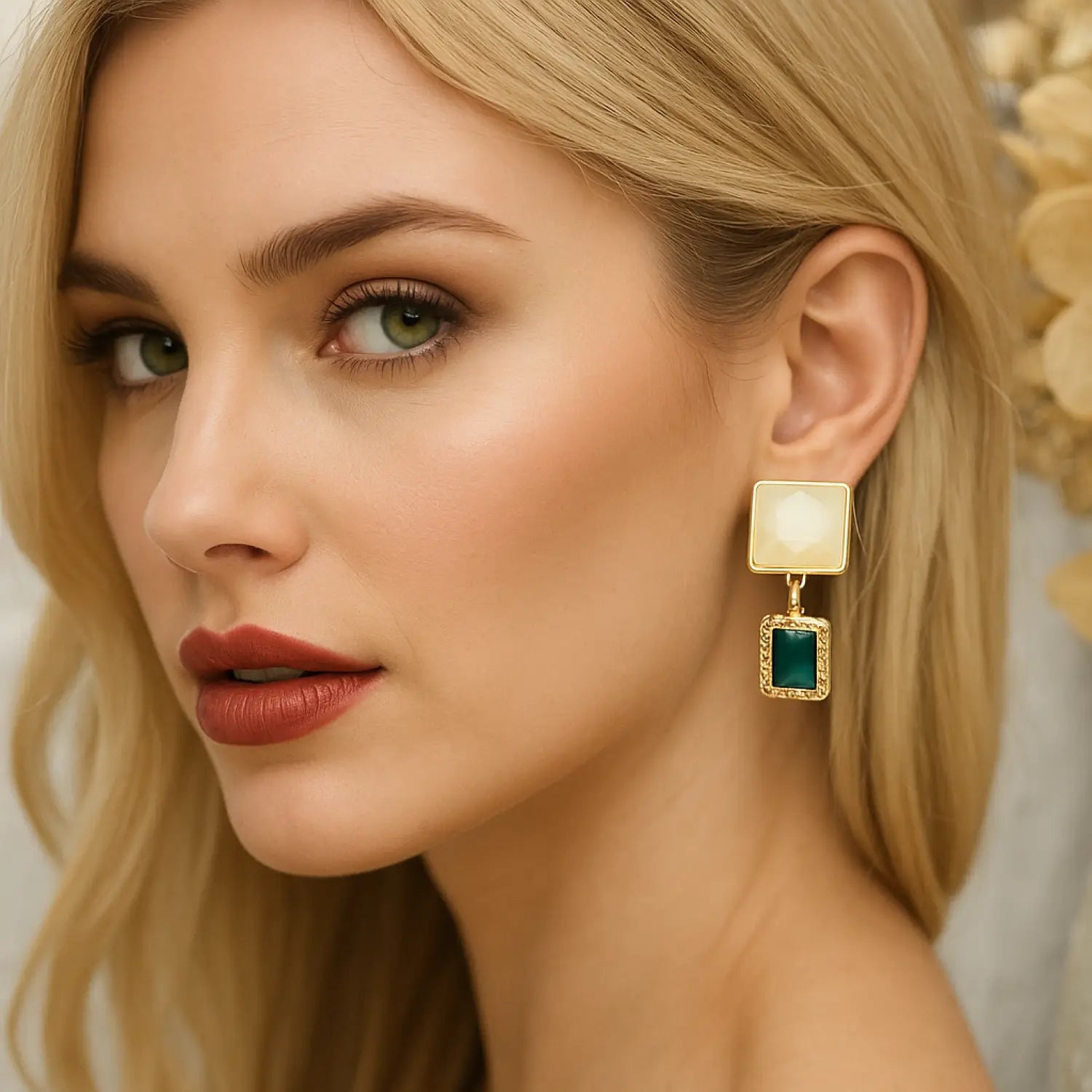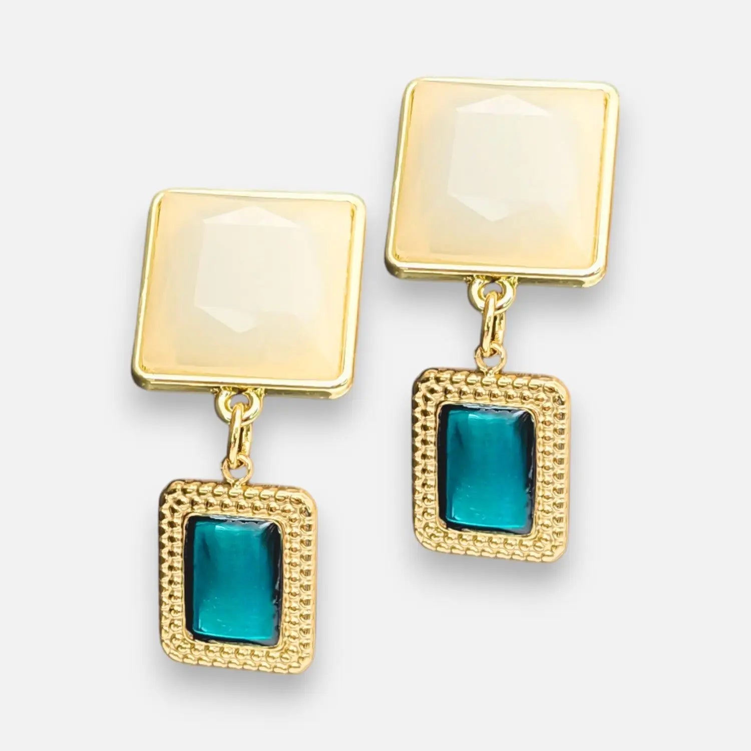 Mit ihrem einzigartigen Blauton im Harzrechteck sind diese Ohrstecker ein wahres Highlight. Sie sind schadstofffrei und verleihen jedem Look eine kühle, modische Note.