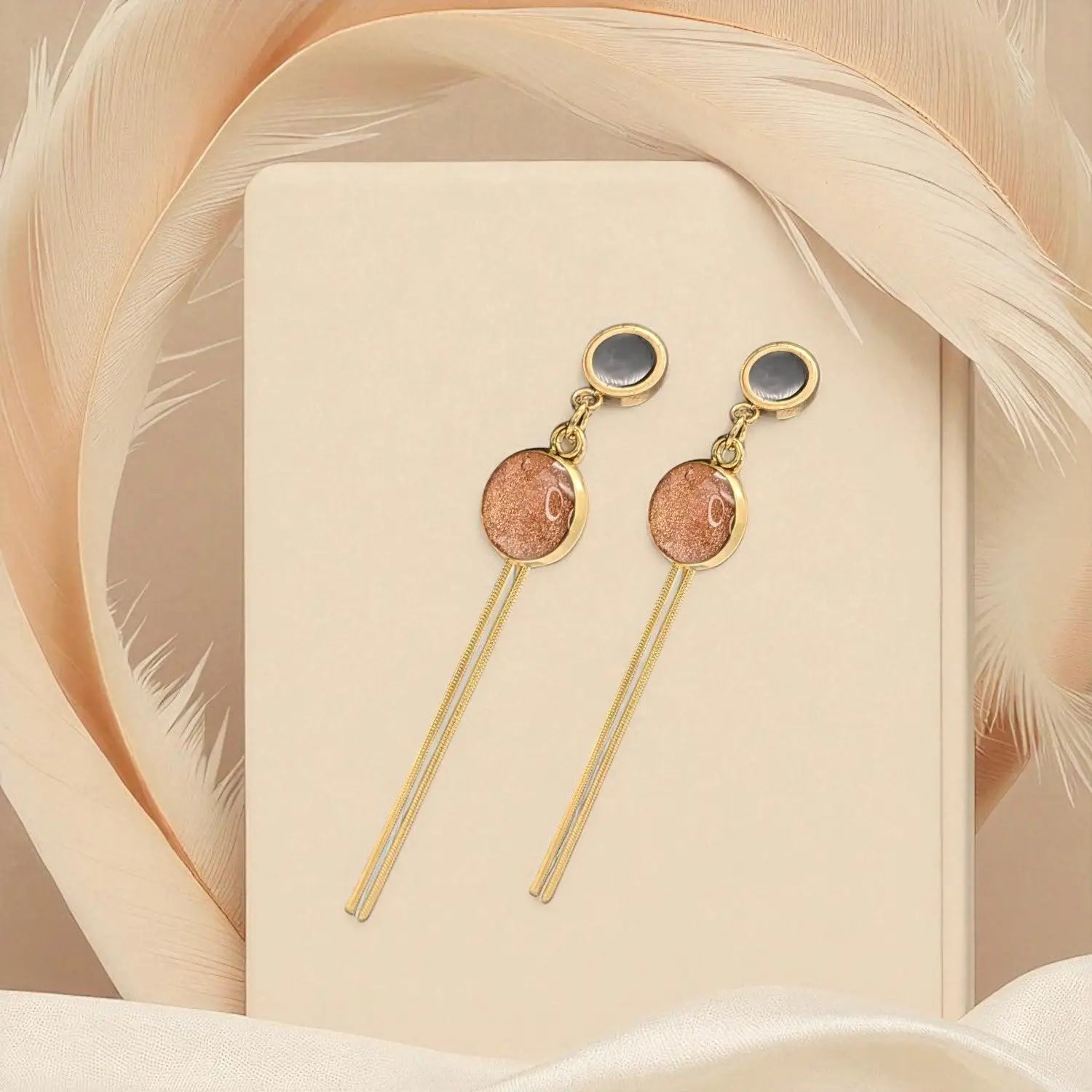 Diese Ohrstecker zeichnen sich durch ihre Erdtöne und langen Quasten aus, die eine spielerische, aber raffinierte Note hinzufügen. Die Emaille-Arbeit verleiht jedem Paar einen unverwechselbaren Charakter.