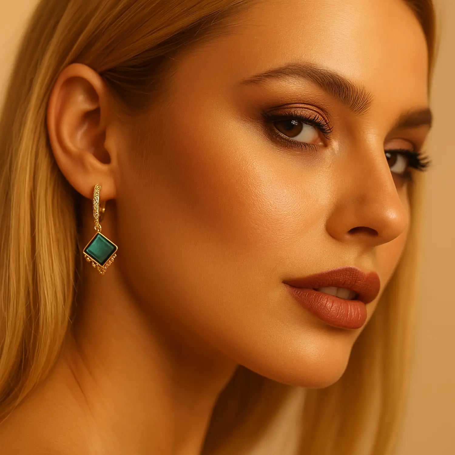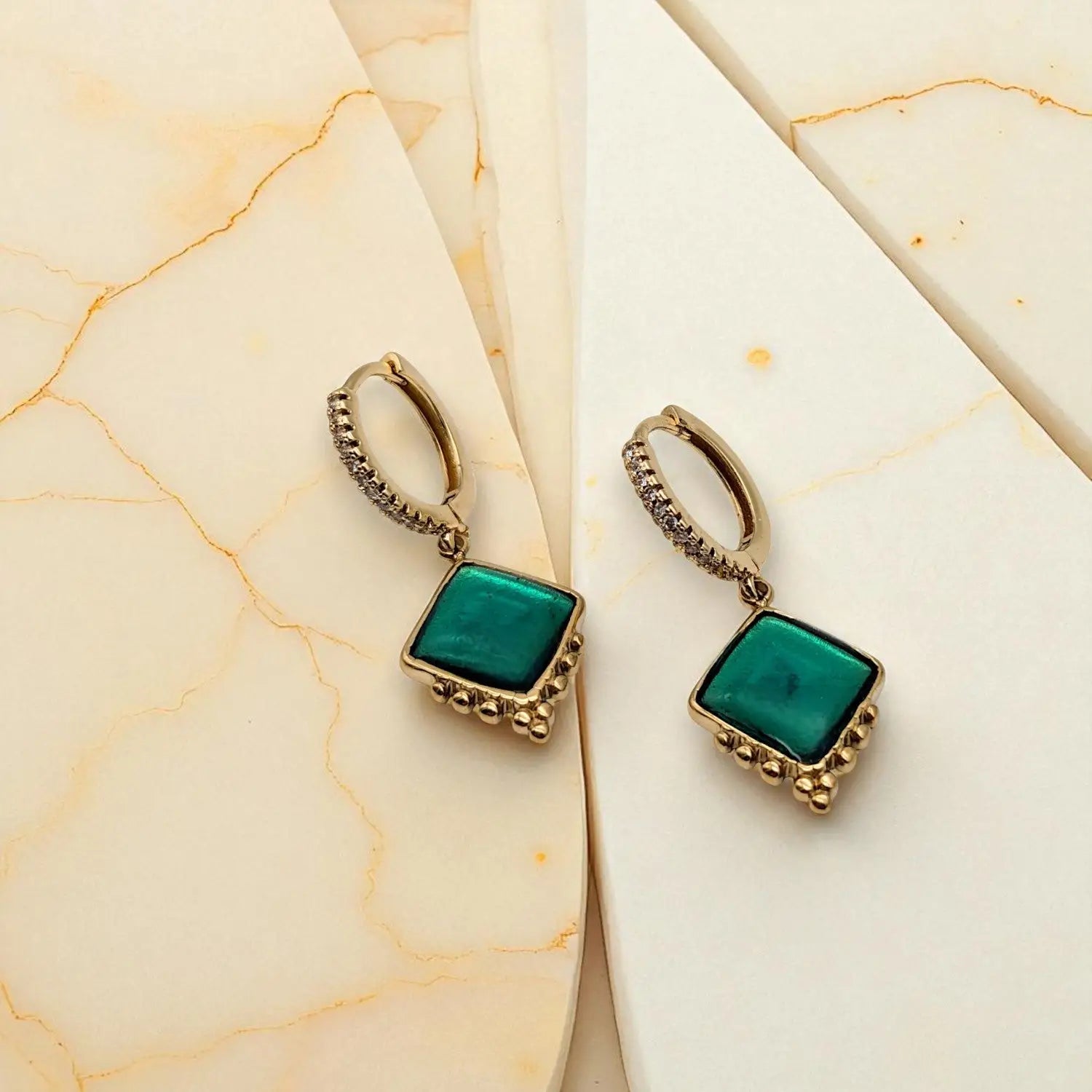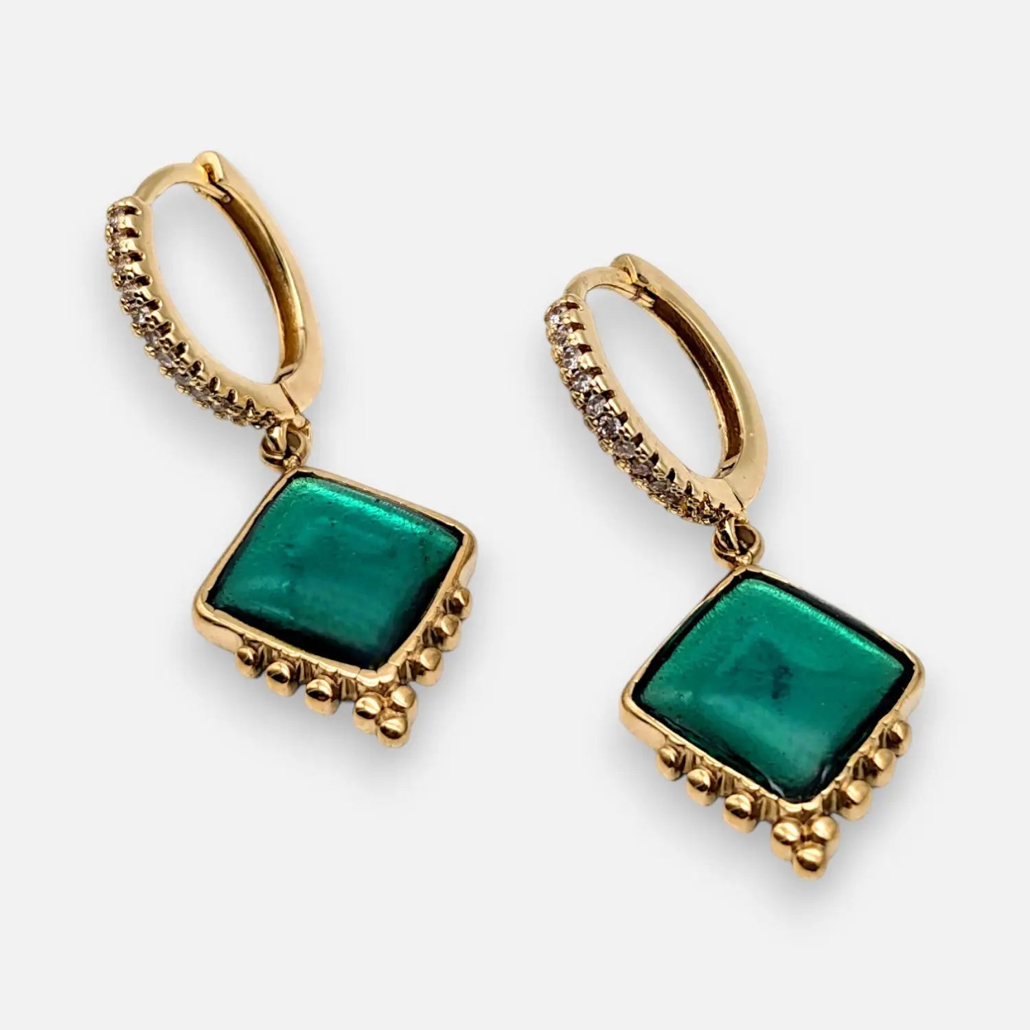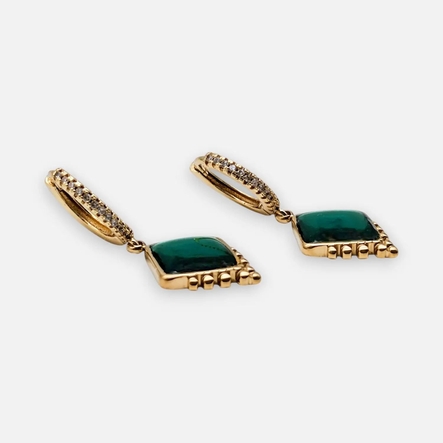 Filigrane Zirkonia-Creolen aus vergoldetem Messing in Grüntönen, perfekt für einen Hauch von Raffinesse im Alltag.