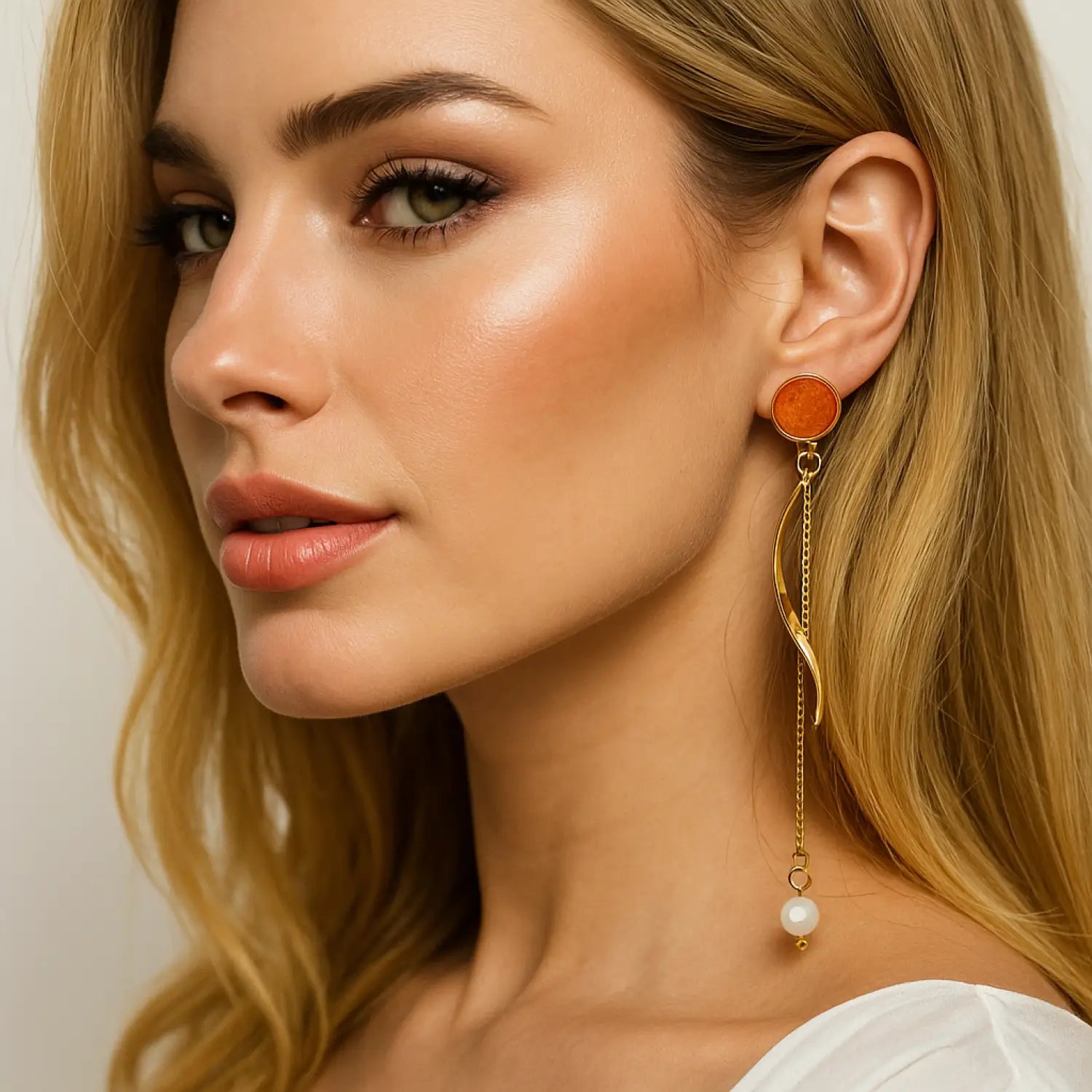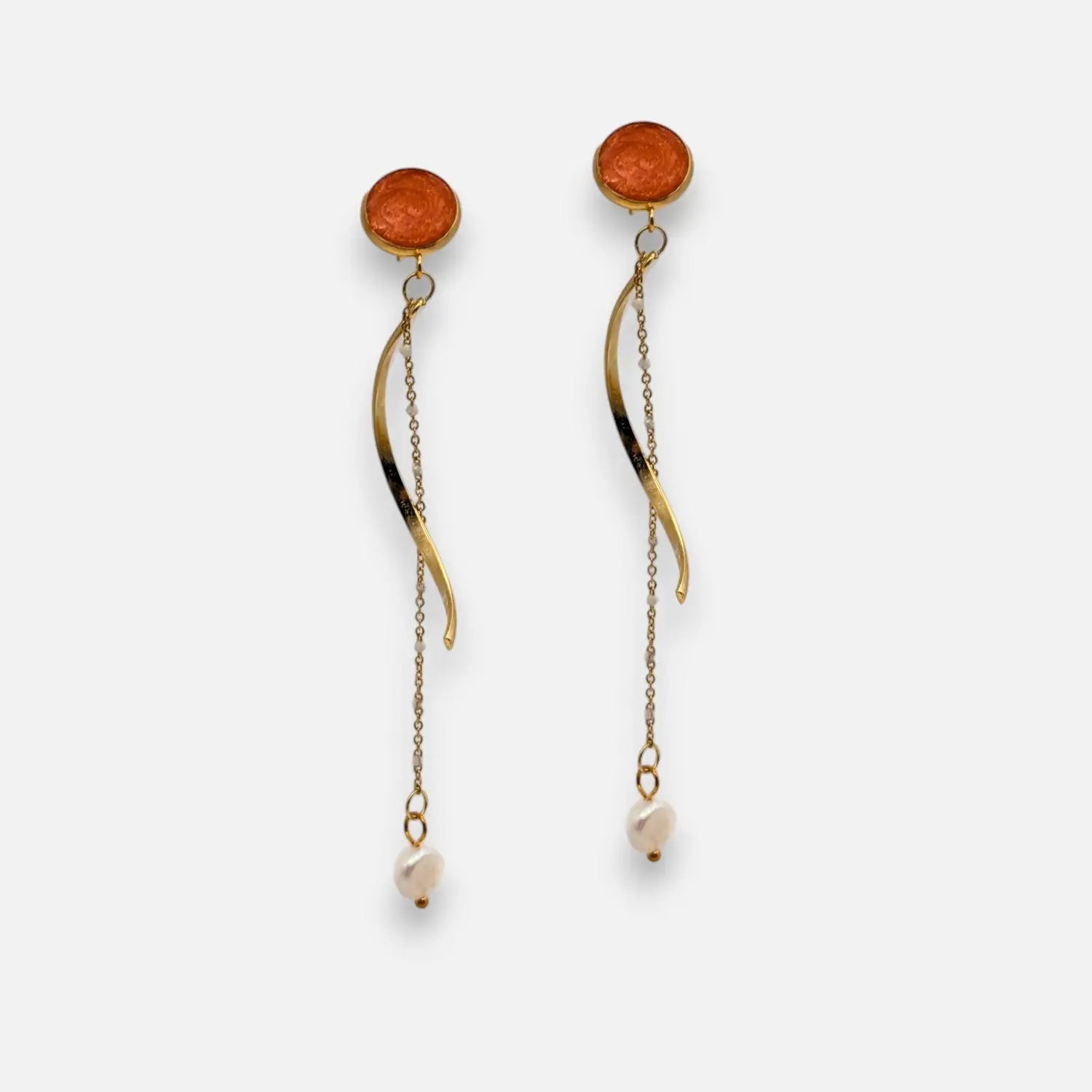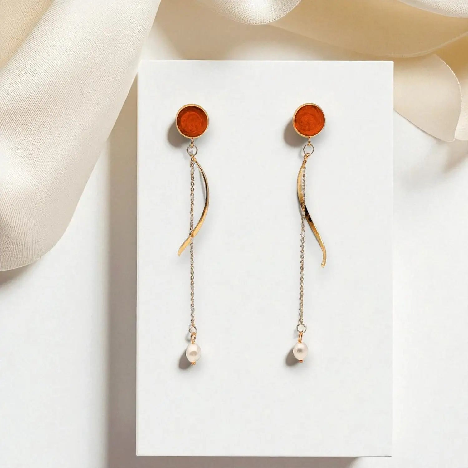 Die warmen Orangetöne dieser Ohrstecker fangen die Essenz eines Sonnenuntergangs ein und bringen Wärme und Lebendigkeit in jede Garderobe.