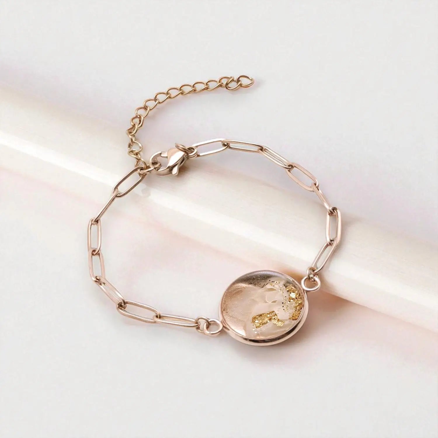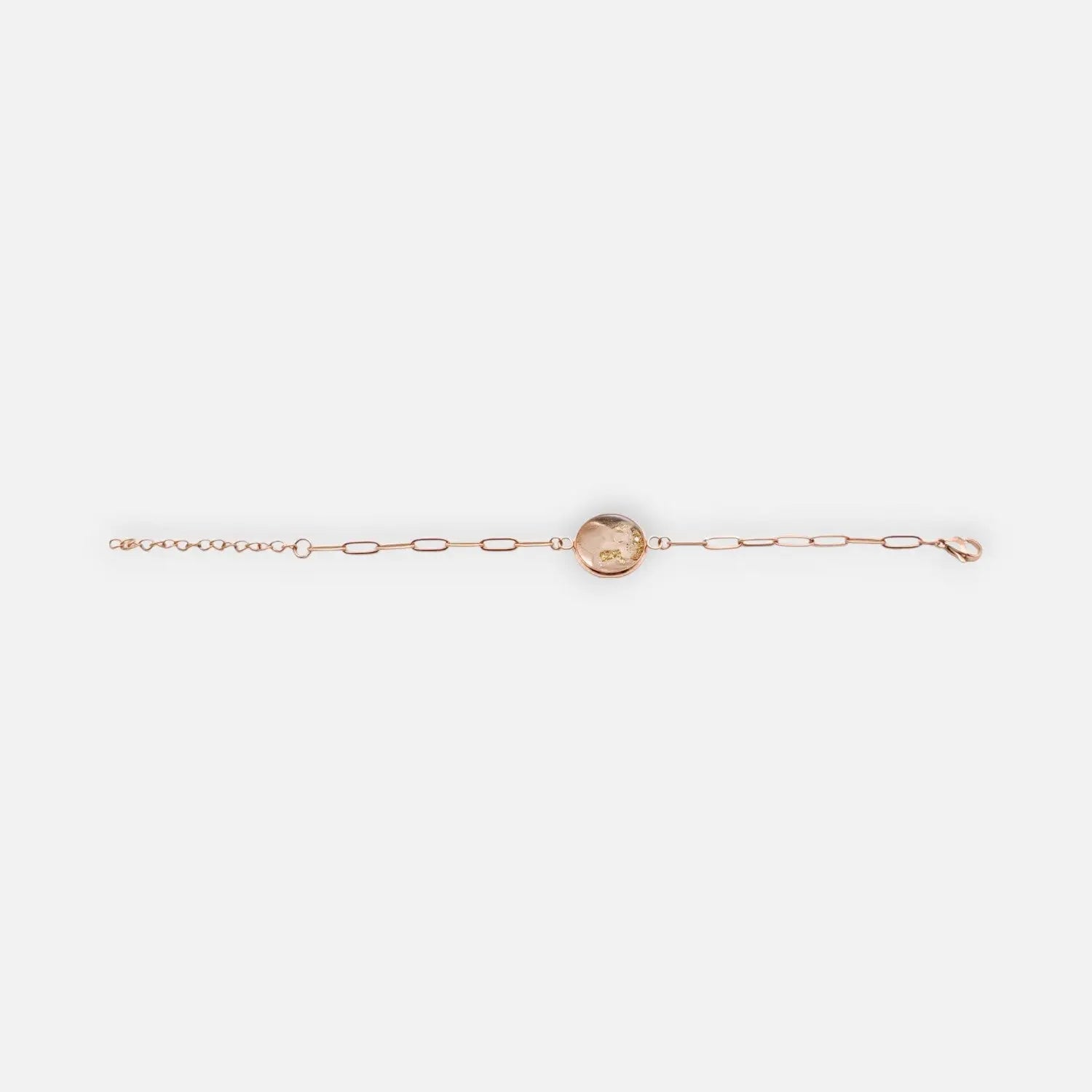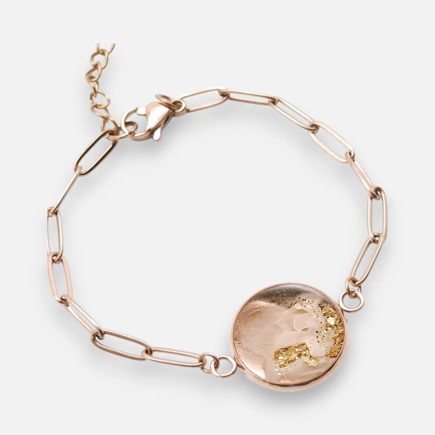 Paperclip, 17 cm + 5 cm Verlängerung, 16 mm Epoxidschale in Beige/Gold/Transluzent, 304 Edelstahl rosè vergoldet.