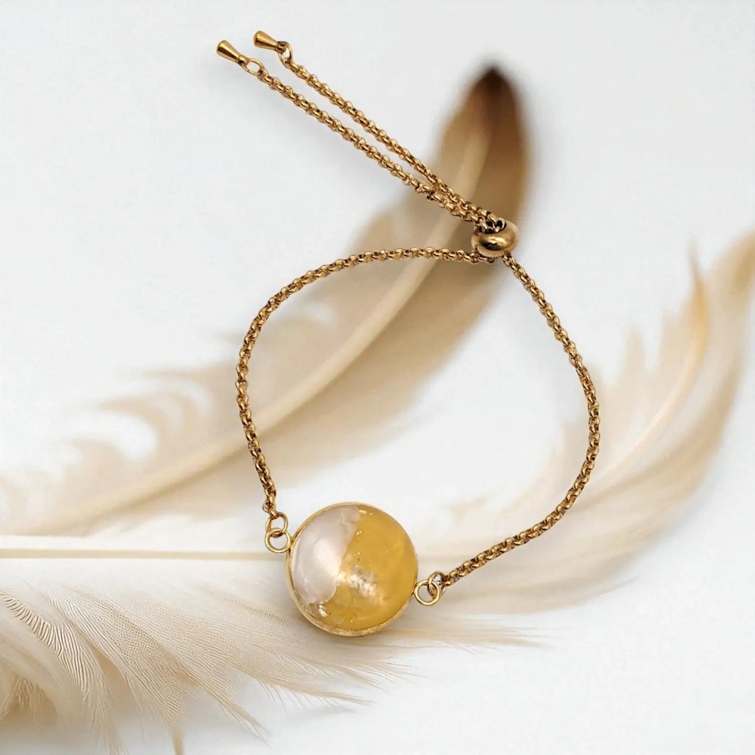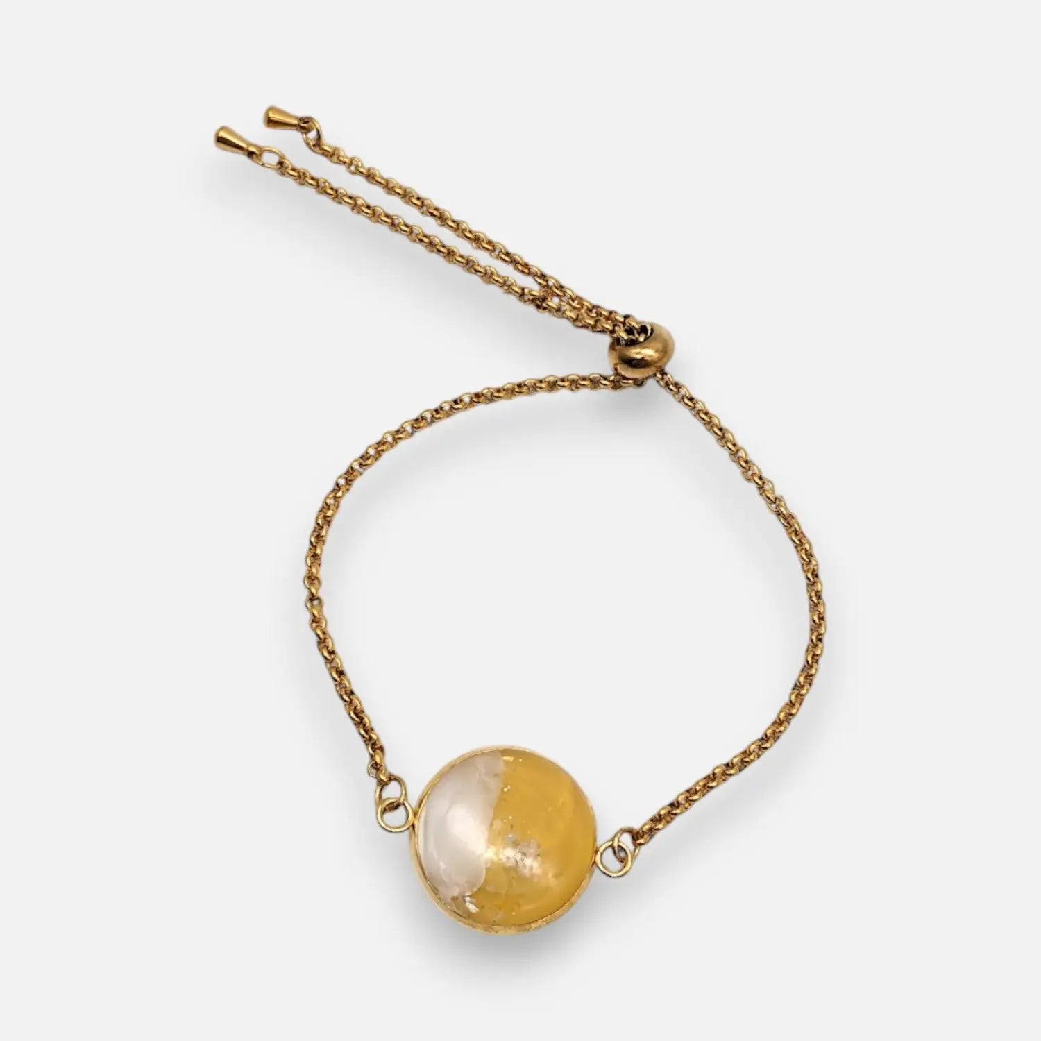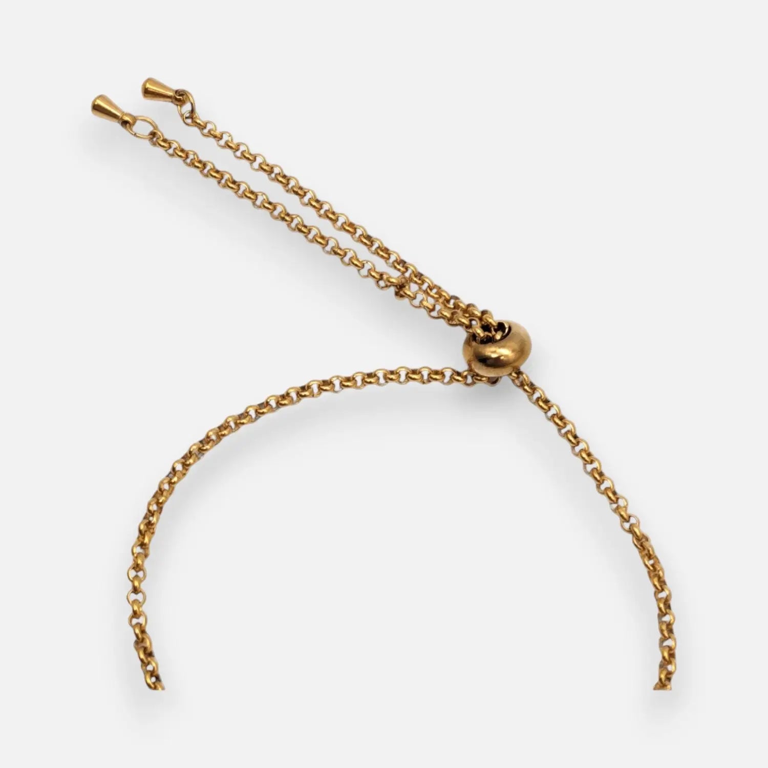 Dieses verstellbare Venezianerketten-Armband bietet eine perfekte Mischung aus Gelb- und Goldtönen, die für jeden Anlass geeignet ist. Die Kette ist 23 cm lang mit einer 20 mm breiten Lünettenschale und bietet durch den Slider-Verschluss eine anpassbare Größe.