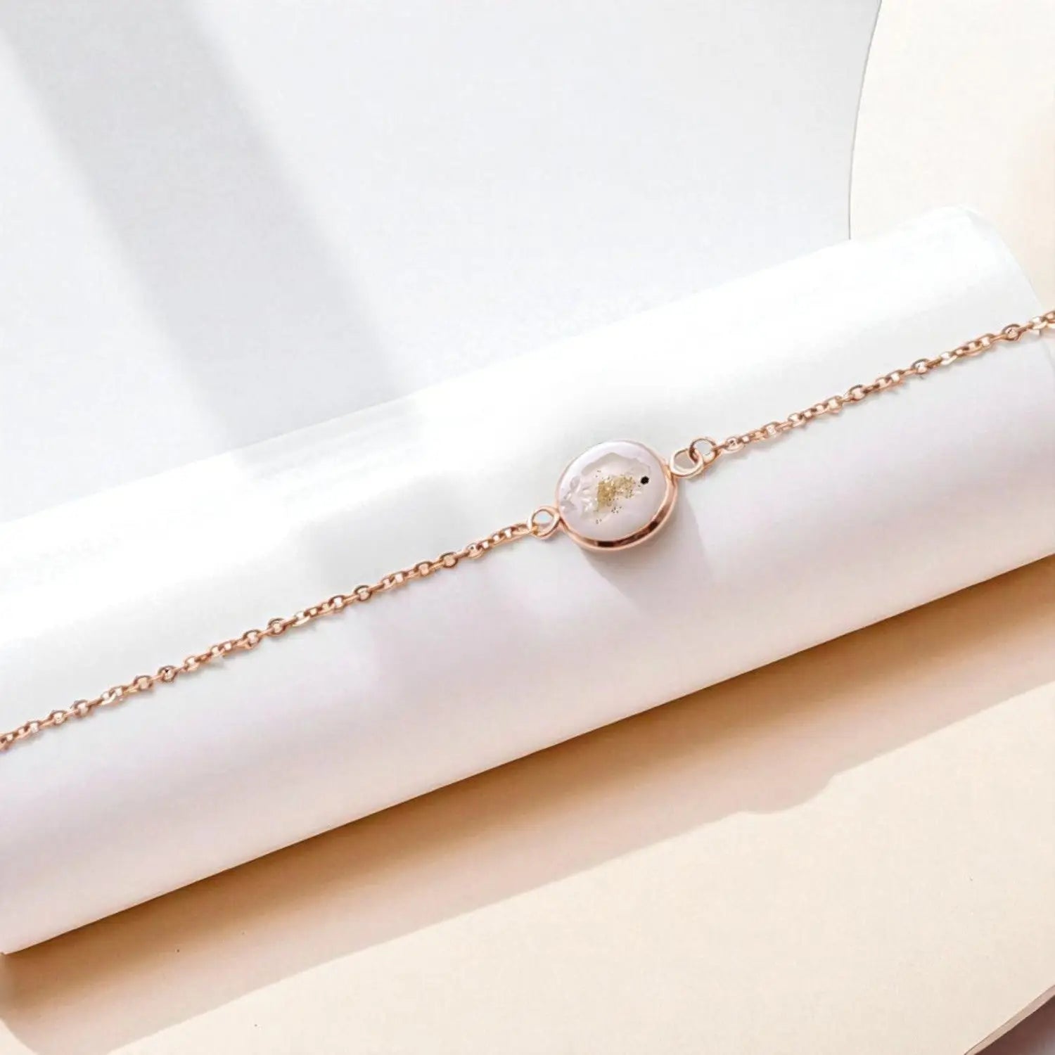 Ankerkette, 18 cm + 5 cm Verlängerung, 12 mm Epoxidschale in Weiß/Gold, 304 Edelstahl rosè vergoldet.