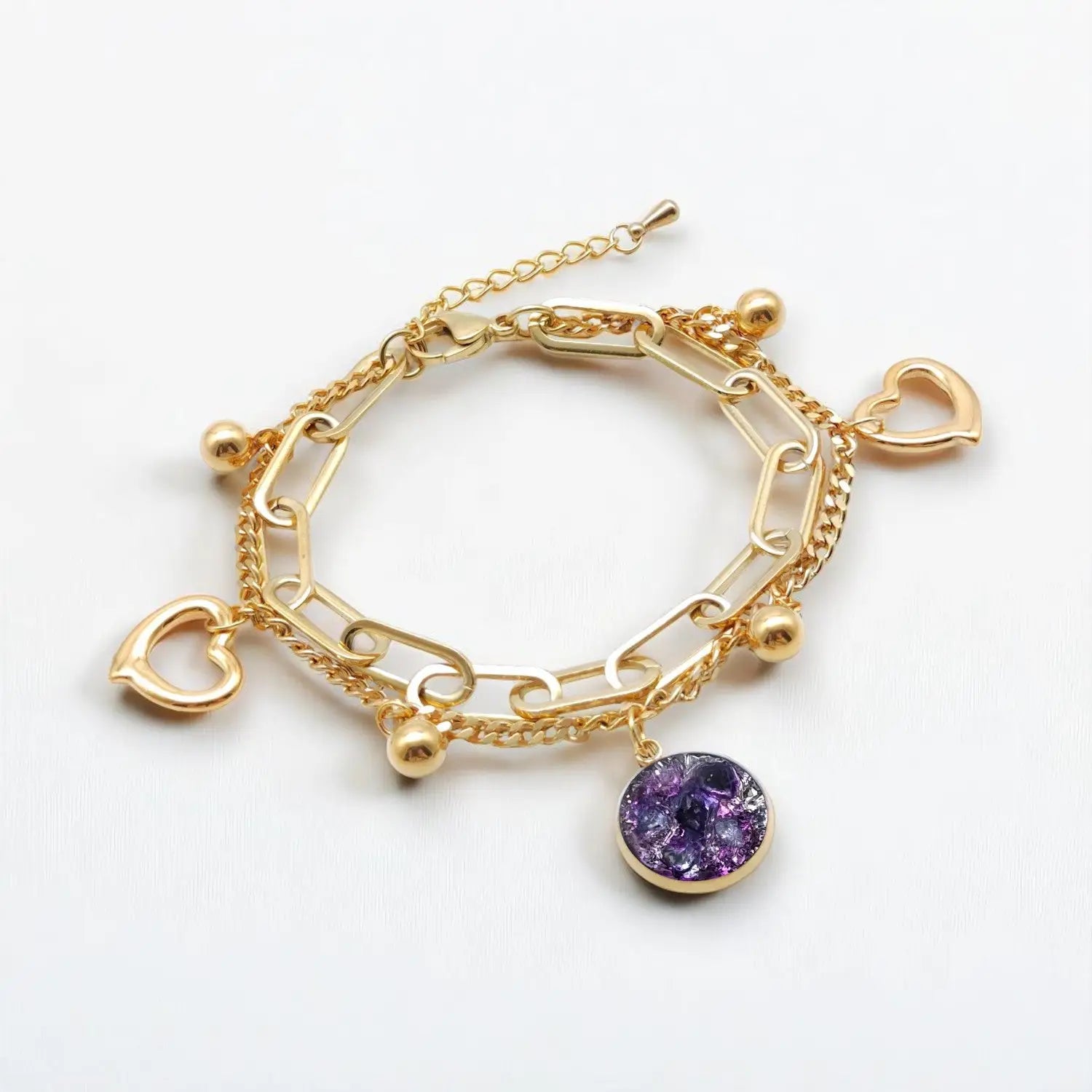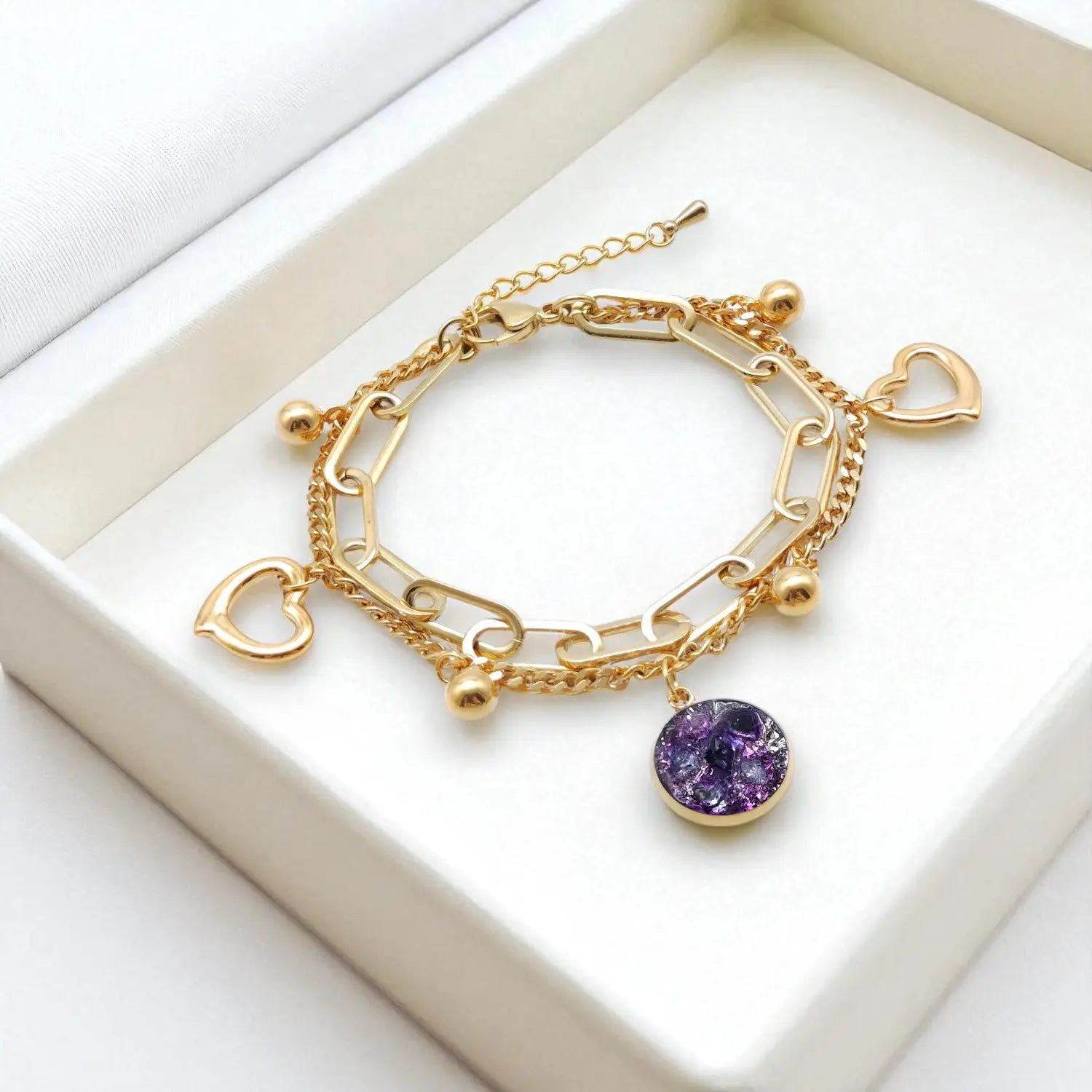 Double-Layer, 18 cm + 4 cm Verlängerung, 14 mm Epoxidschale in Violett/Transluzent/Silber, 304-Edelstahl vergoldet.