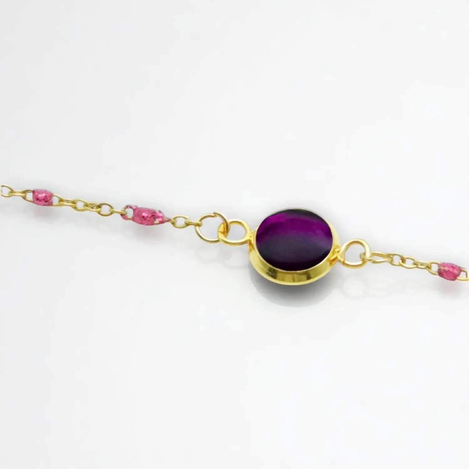 Ankerkette mit Emaille, 16 cm + 6 cm Verlängerung, 8 mm Epoxidschale in Violett, 304-Edelstahl vergoldet.