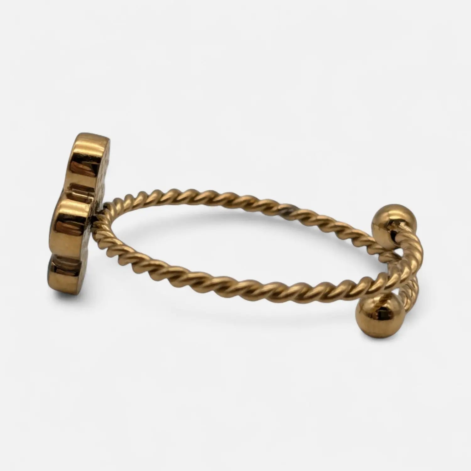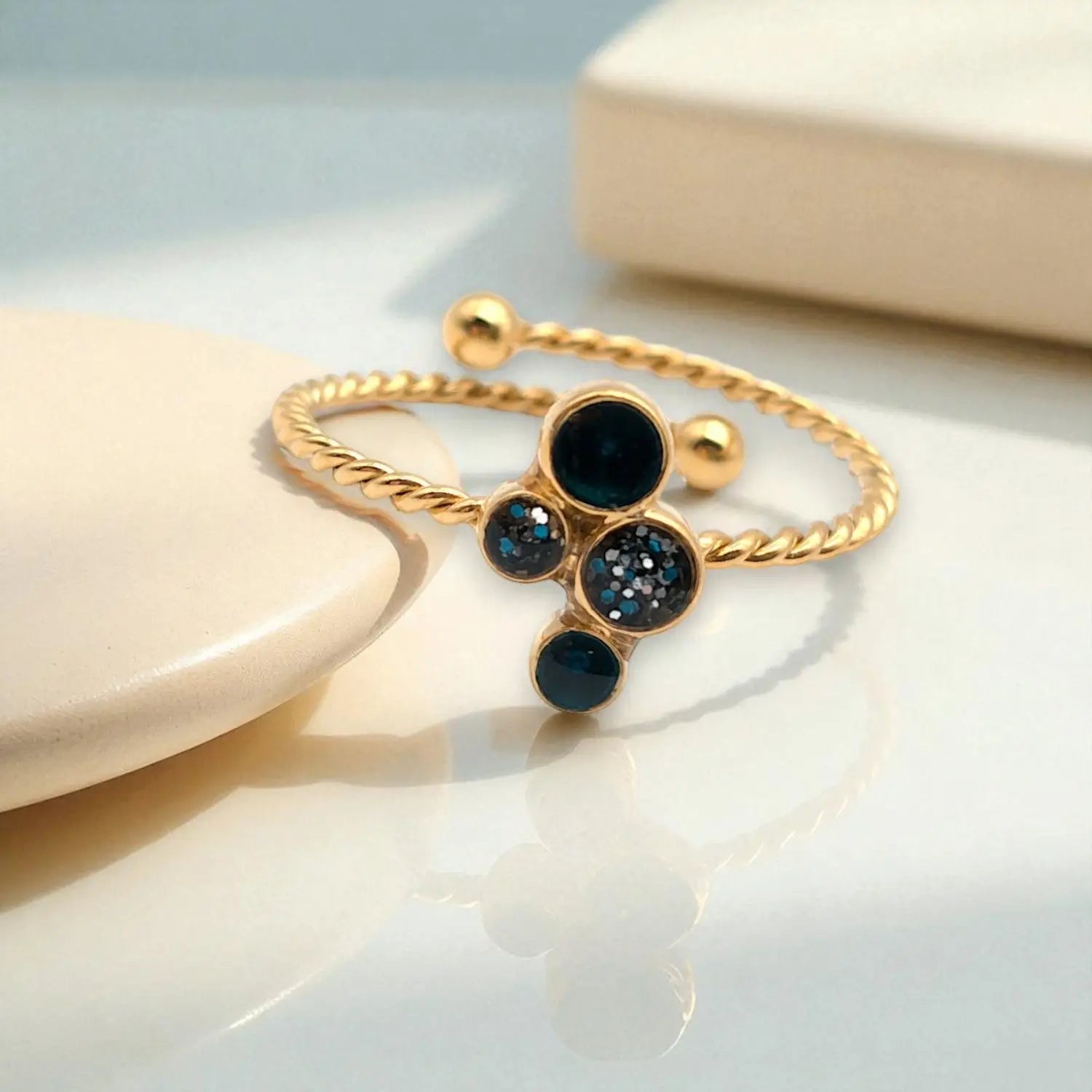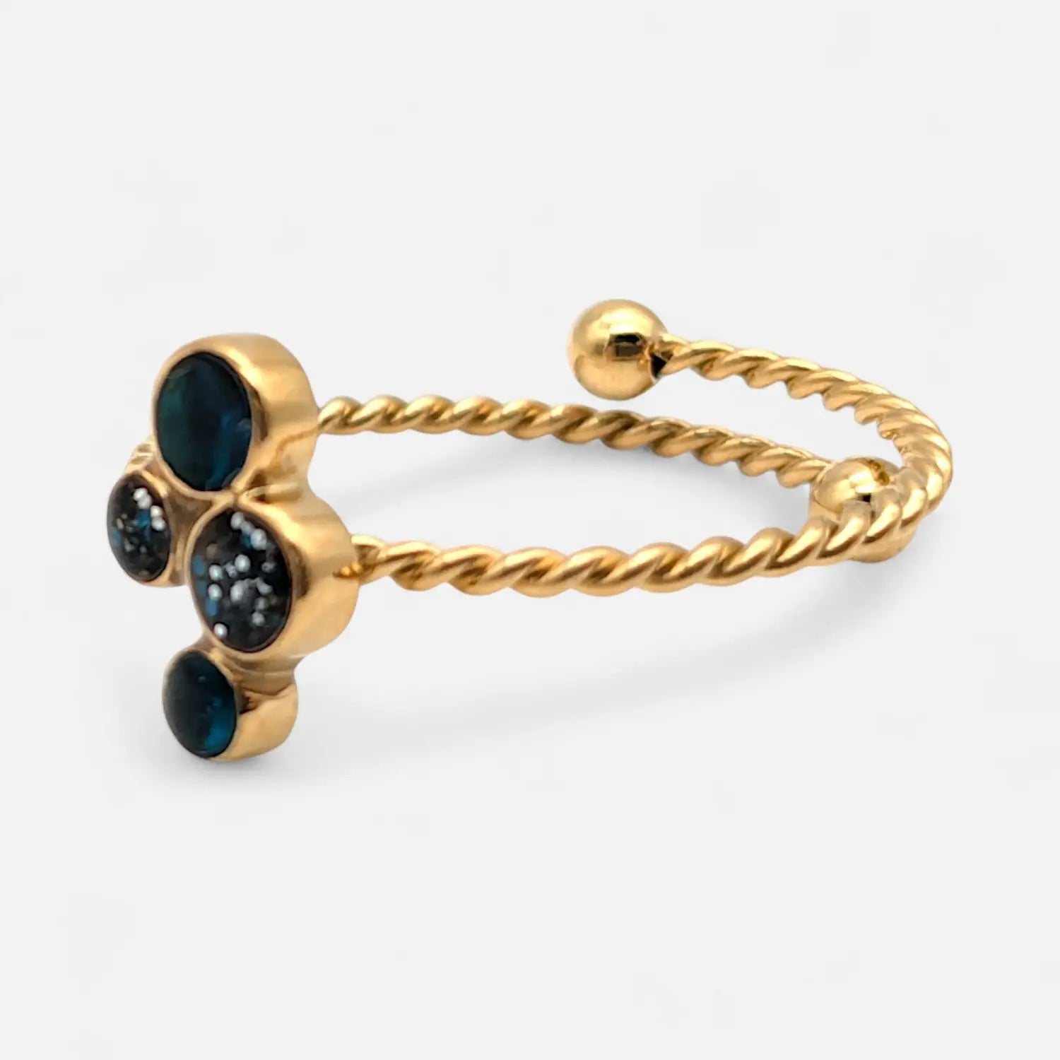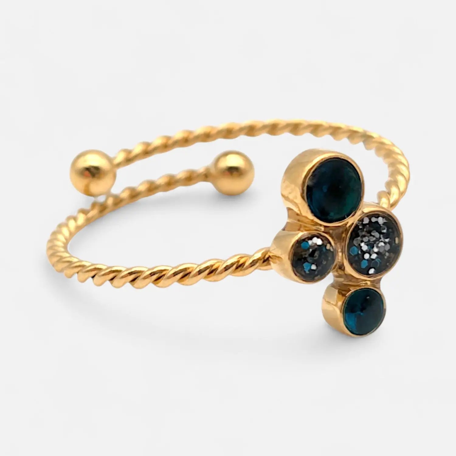 Deep blue and silver accents on an adjustable ring for a modern look.