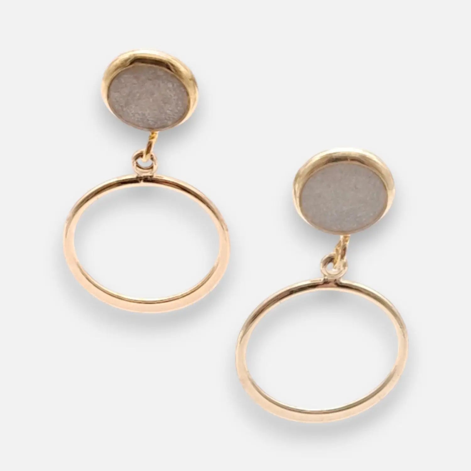 Stud earrings, 3 cm, 8 mm epoxy shell in silver, gold-plated brass ring pendants, 304 stainless steel gold-plated.