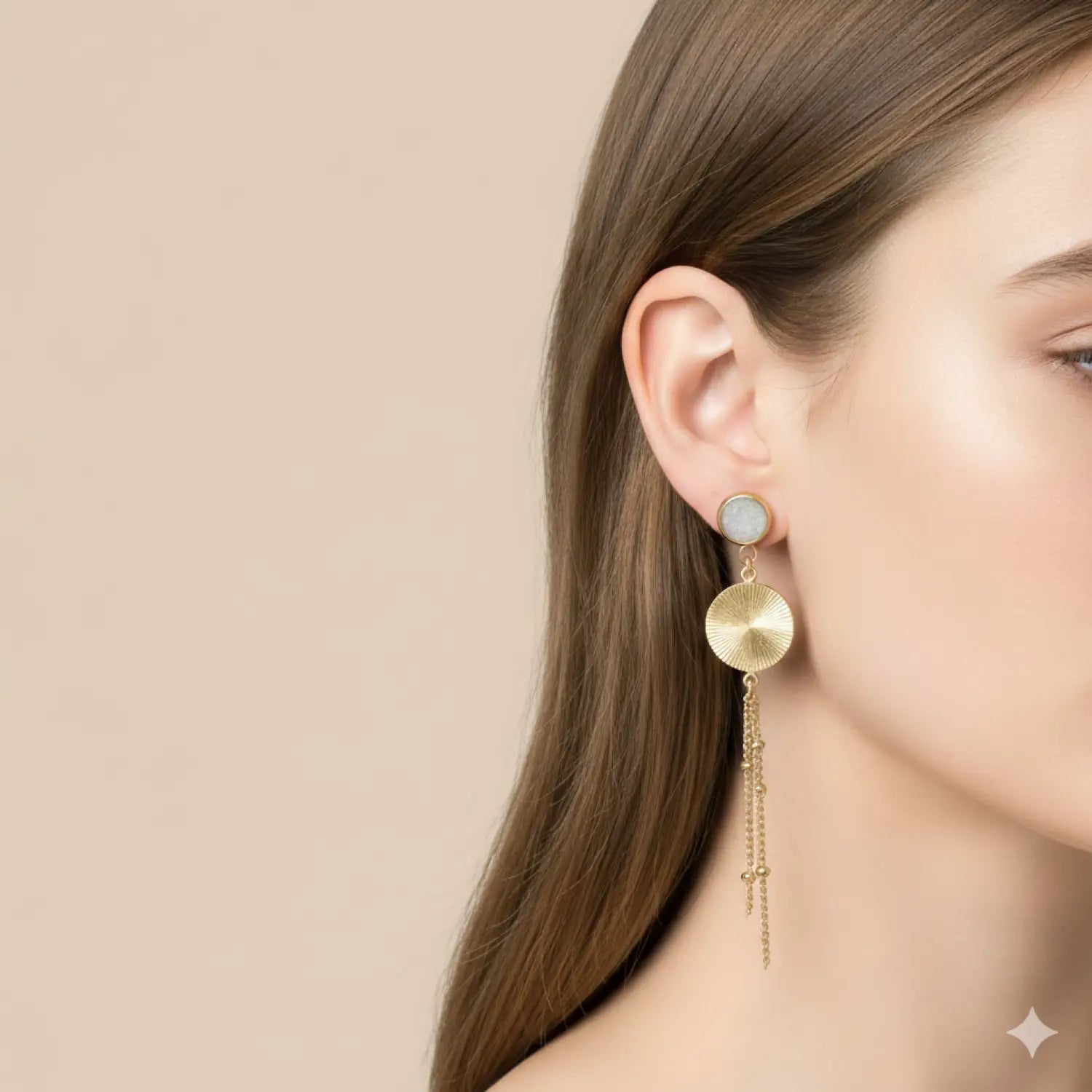 Stud earrings, 6.5 cm, 6 mm epoxy shell in silver, 14k gold-plated stainless steel connector, 304 stainless steel gold-plated.