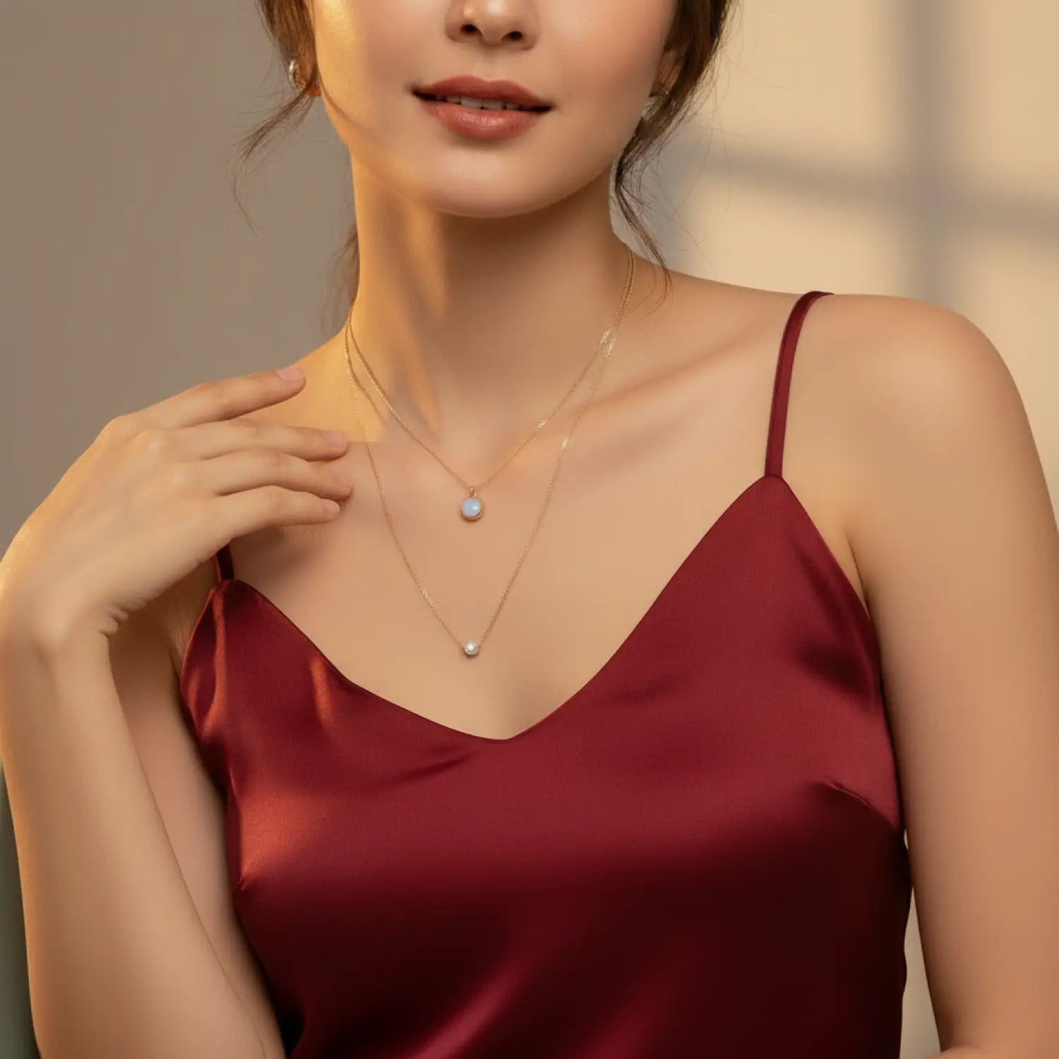 Fine rose gold-plated double-layer chain with a subtle epoxy resin bowl in stylish white tones, including a 5 cm extension.