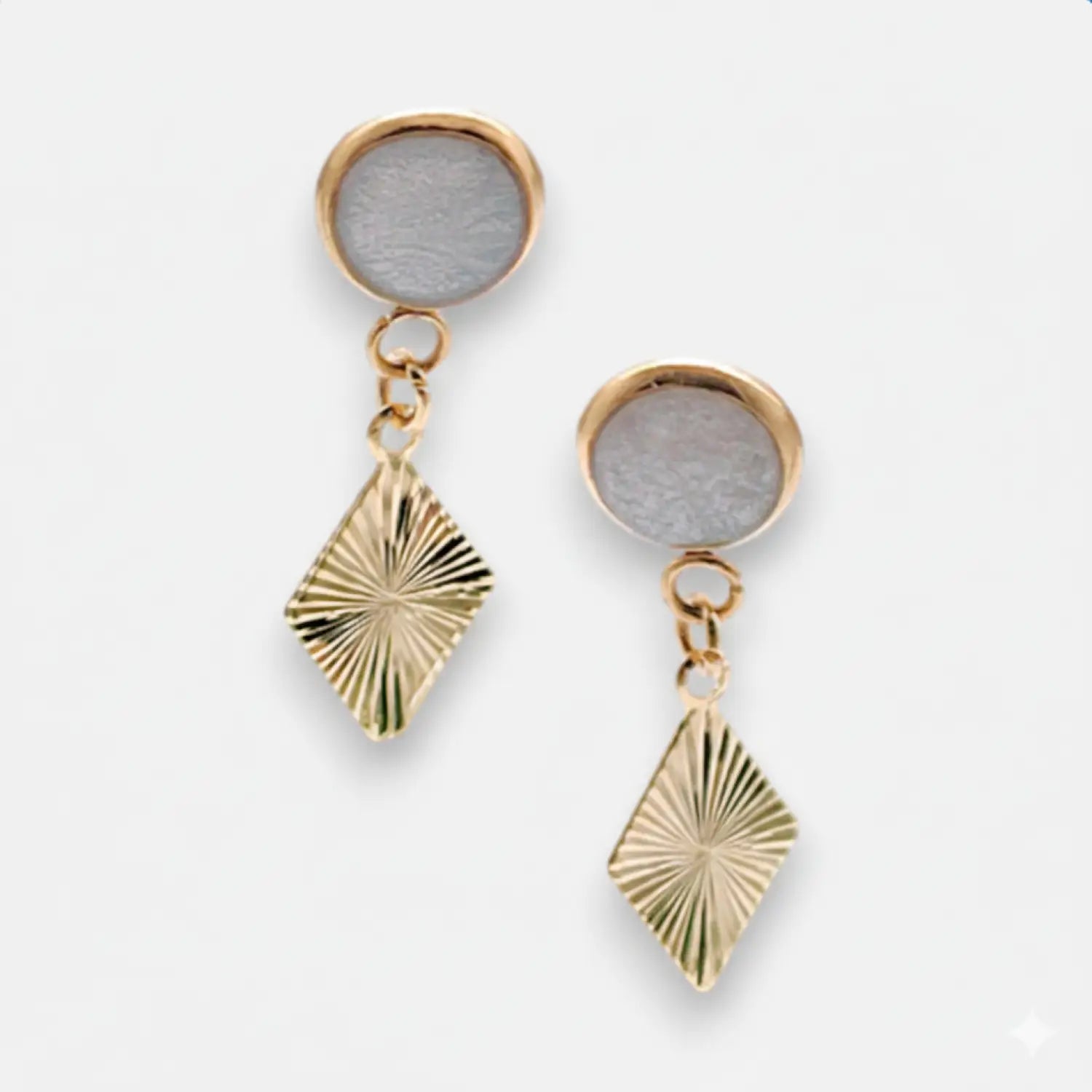 Minimalist stud earrings, 2.5 cm, 4 mm epoxy shell in silver, 304 stainless steel gold plated.