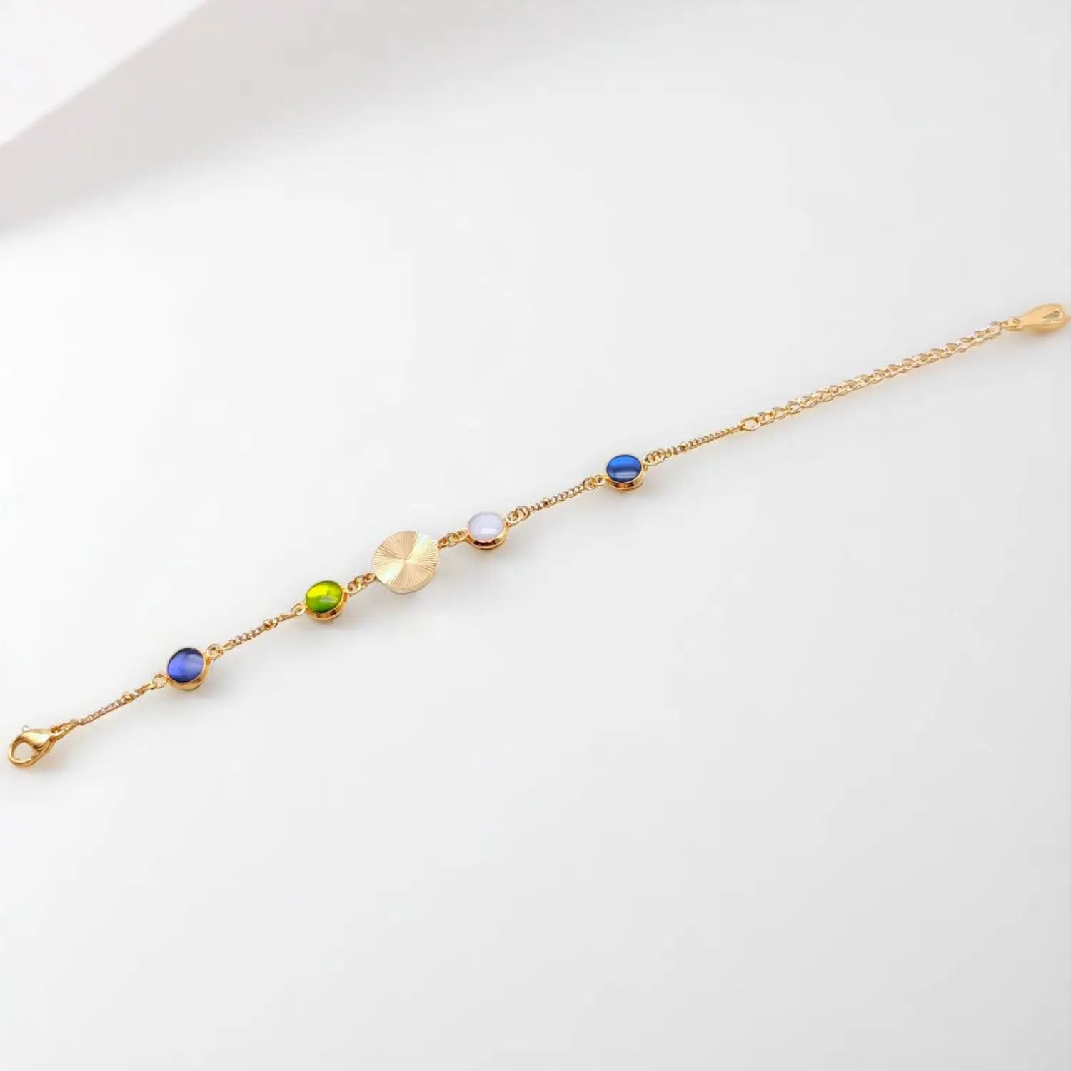 Gold-plated 304 stainless steel ball anchor chain, 15 cm + 6 cm extension, 6 mm epoxy shell in green/white/blue.