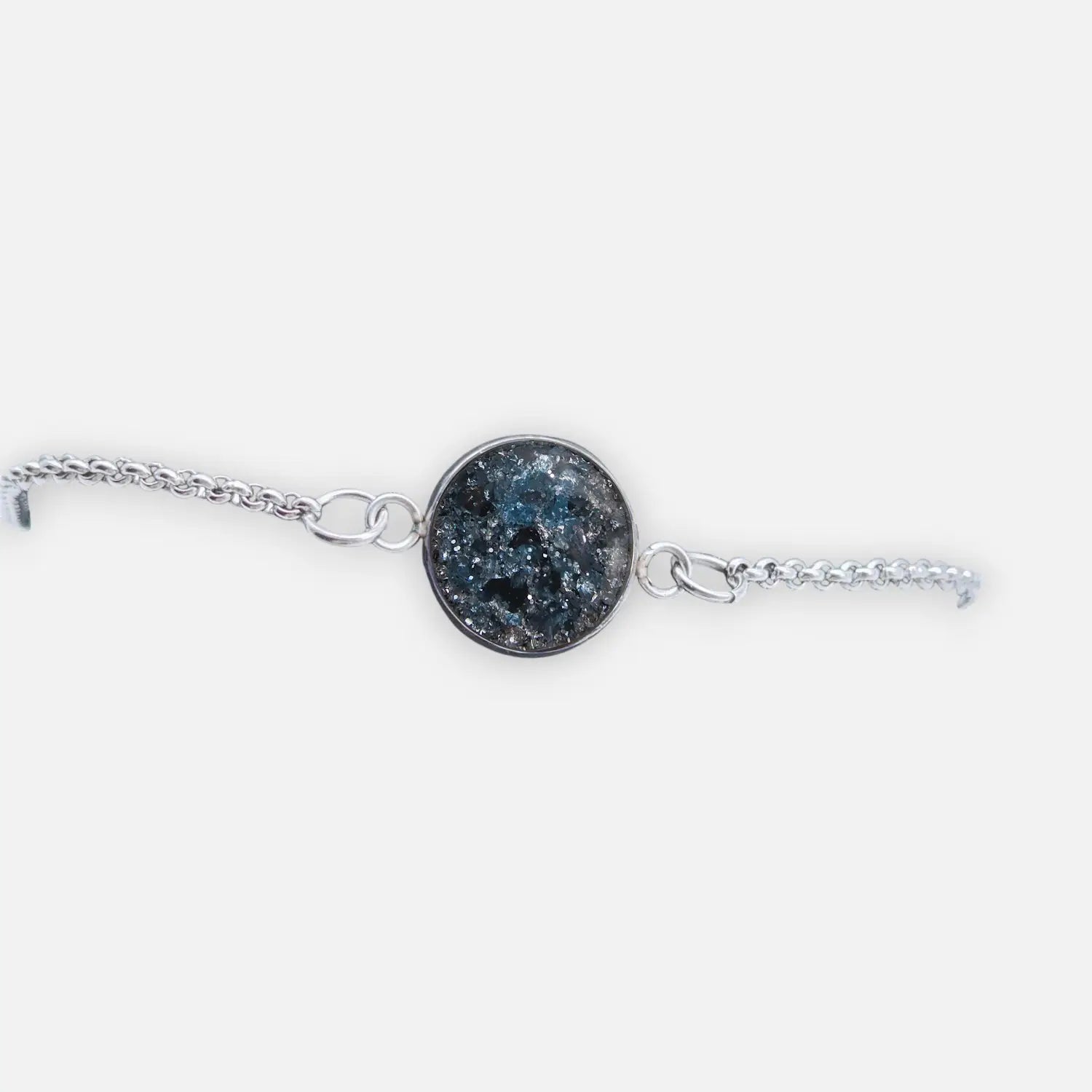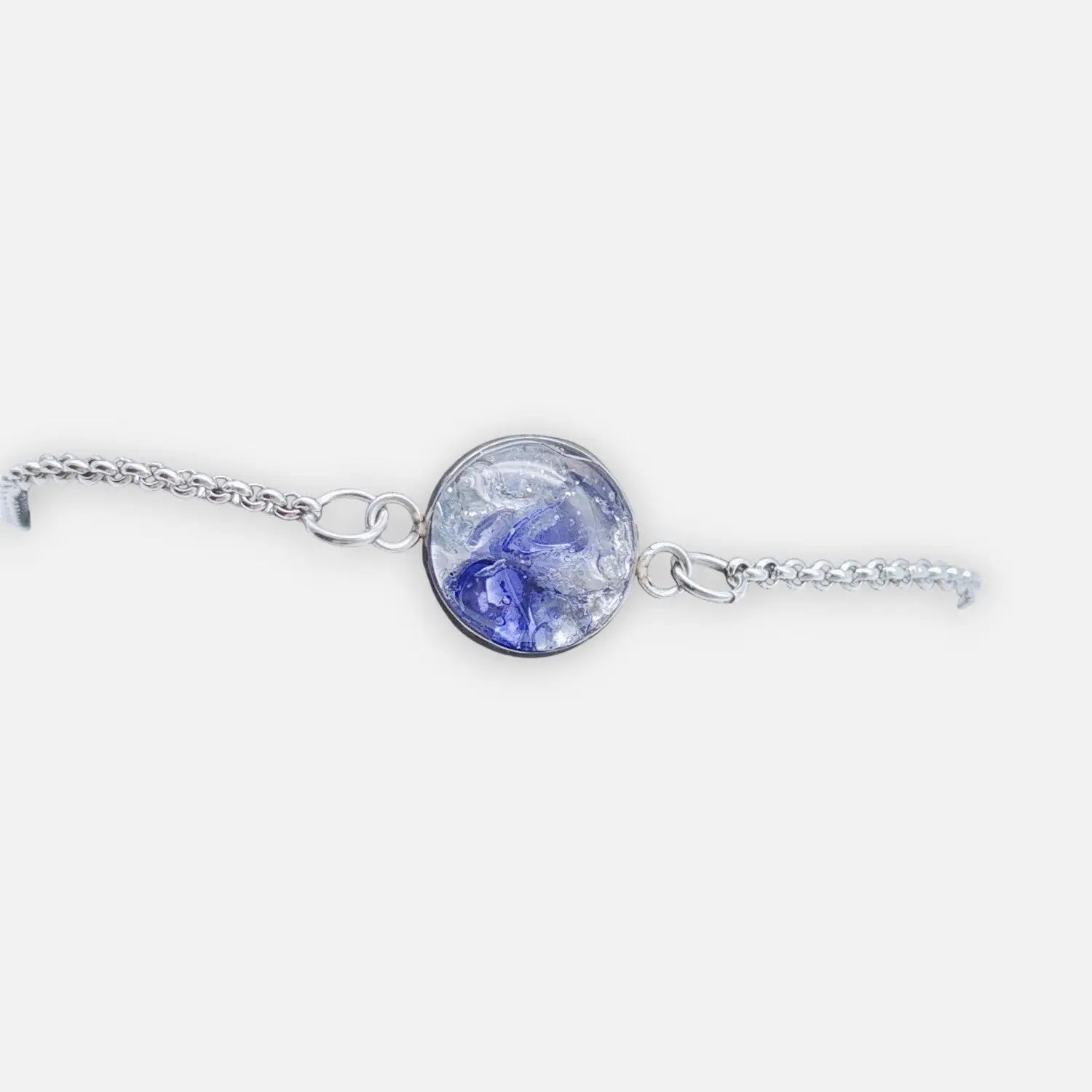 Klassisches Venezianer (Box) Armband mit praktischem 6,5-cm-Verlängerer für verstellbaren Sitz. Aus nativem 304 Edelstahl, 18 cm Länge mit 2 mm Kettenprofil, passend zum 12 mm Epoxy-Anhänger-Stil und gesichert mit Karabinerschließe.