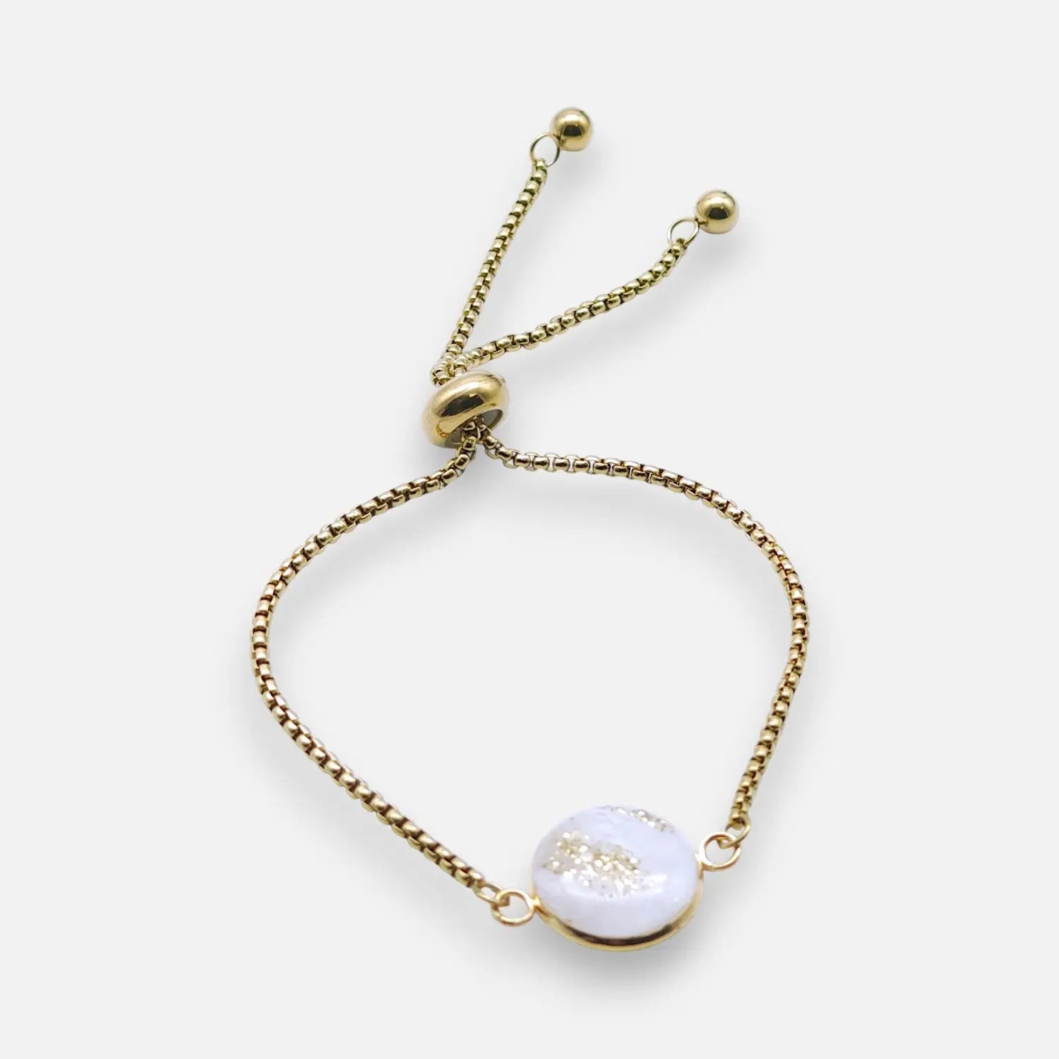 Schlankes Venezianer (Box) Armband mit sanfter Slider-Verstellung für müheloses Anpassen. Aus vergoldetem 304 Edelstahl, 24 cm verstellbare Länge, 2 mm Kettenprofil, passend zum 14 mm Epoxy-Anhänger-Stil – clean, modern und retail-ready.