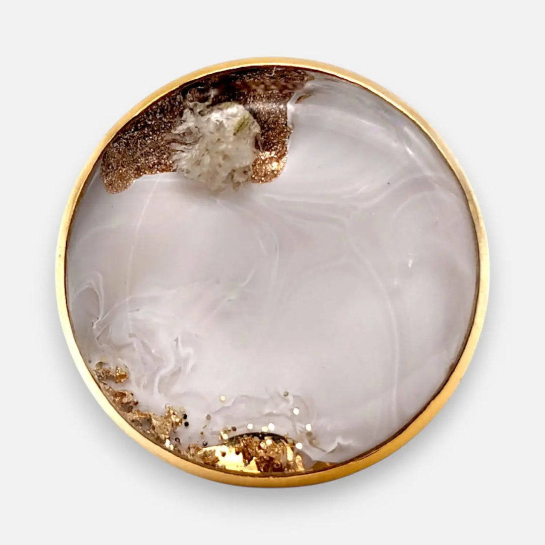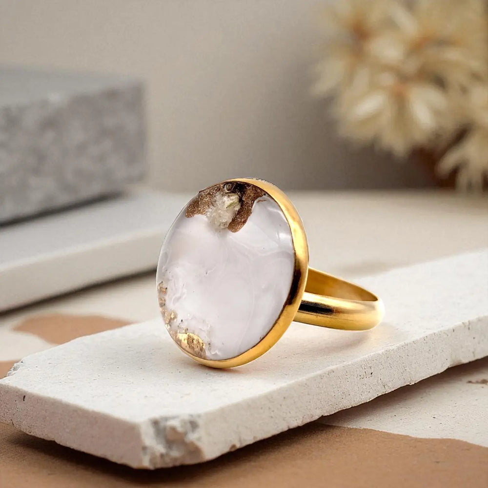 The Blue Translucent Elegance ring impresses with its blue-translucent coloring, paired with shimmering shell fragments.