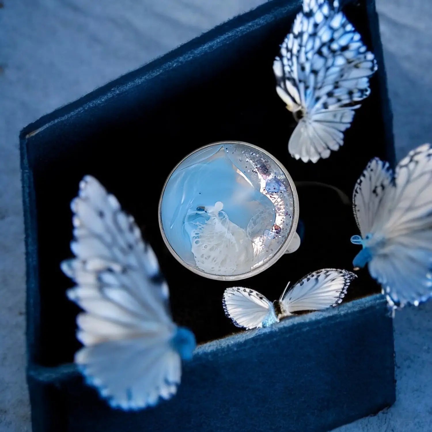 Note about our epoxy resin jewelry: Since all of our epoxy resin jewelry is handmade and unique, the epoxy painting in the bowls cannot be reproduced exactly. Each piece is very close to the original, but may have slight variations.