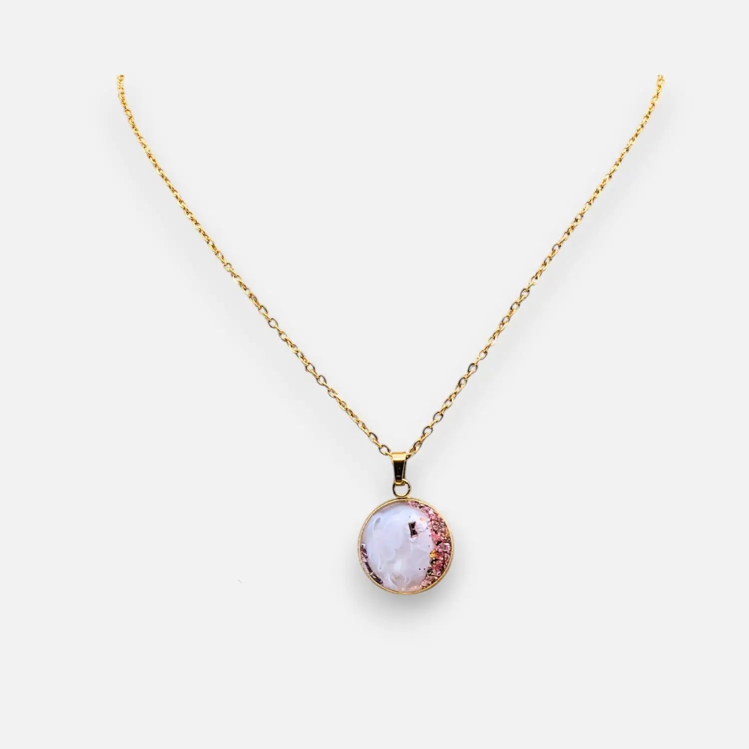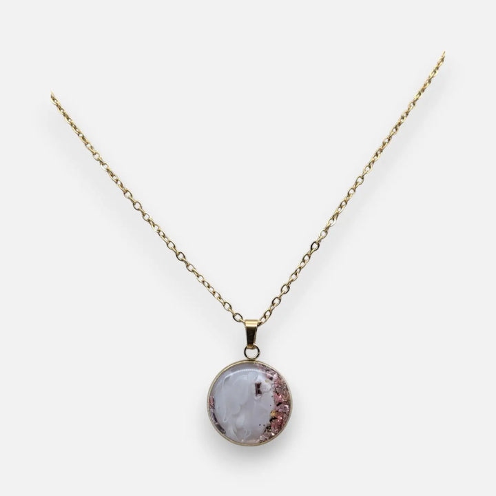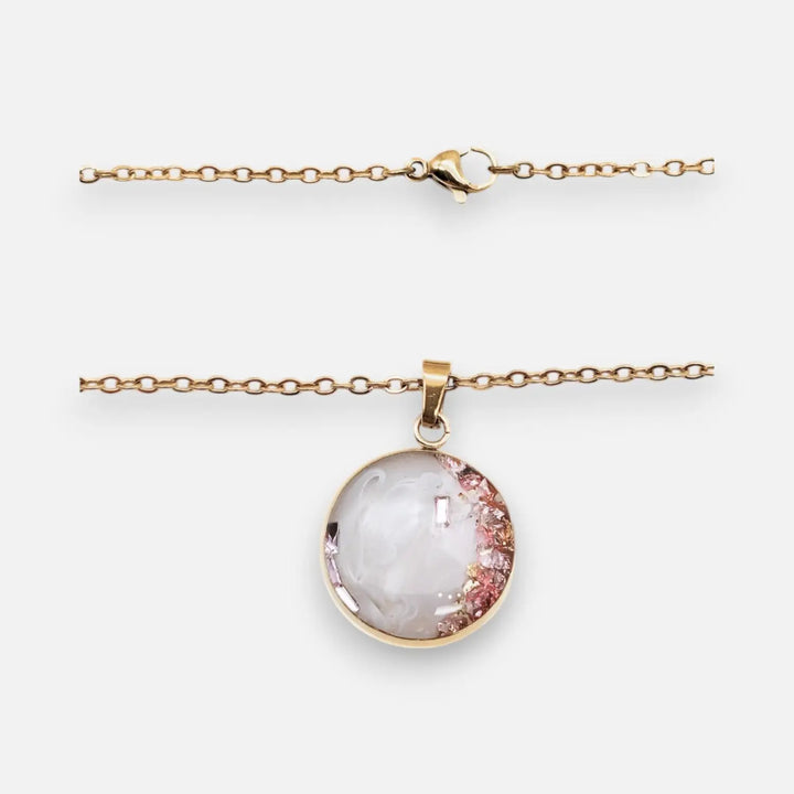 Elegant shades of pink meet classic white in this 45 cm anchor chain. The gold-plated 304 stainless steel accentuates the delicate color palette and makes it a favorite piece for spring and summer.