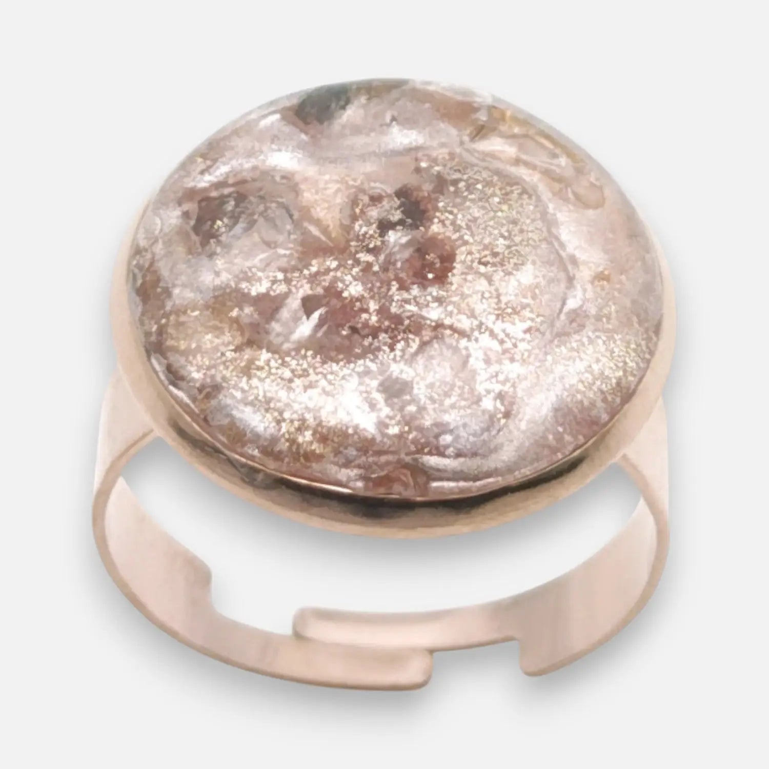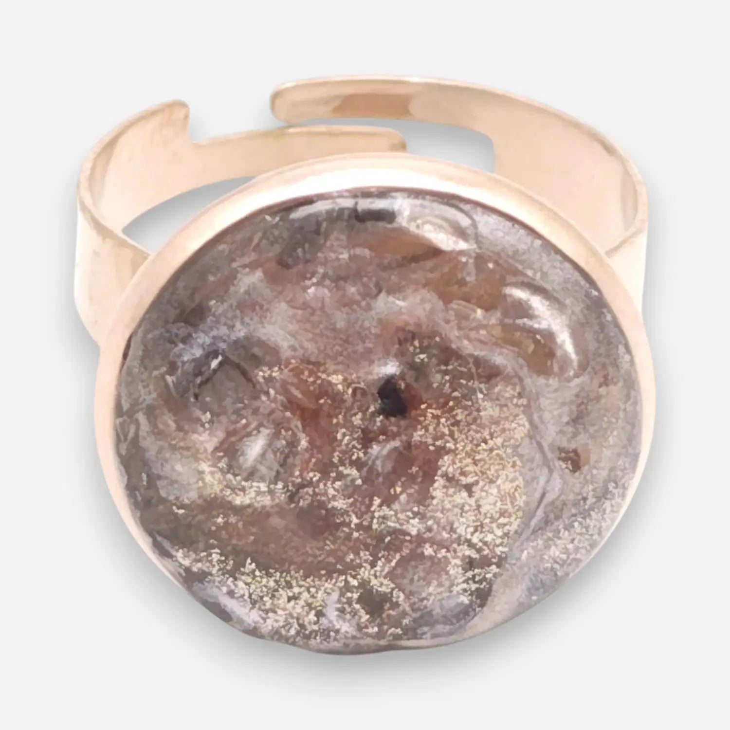 Bague réglable en acier inoxydable 304 plaqué or rose avec coque époxy or/marron de 16 mm.