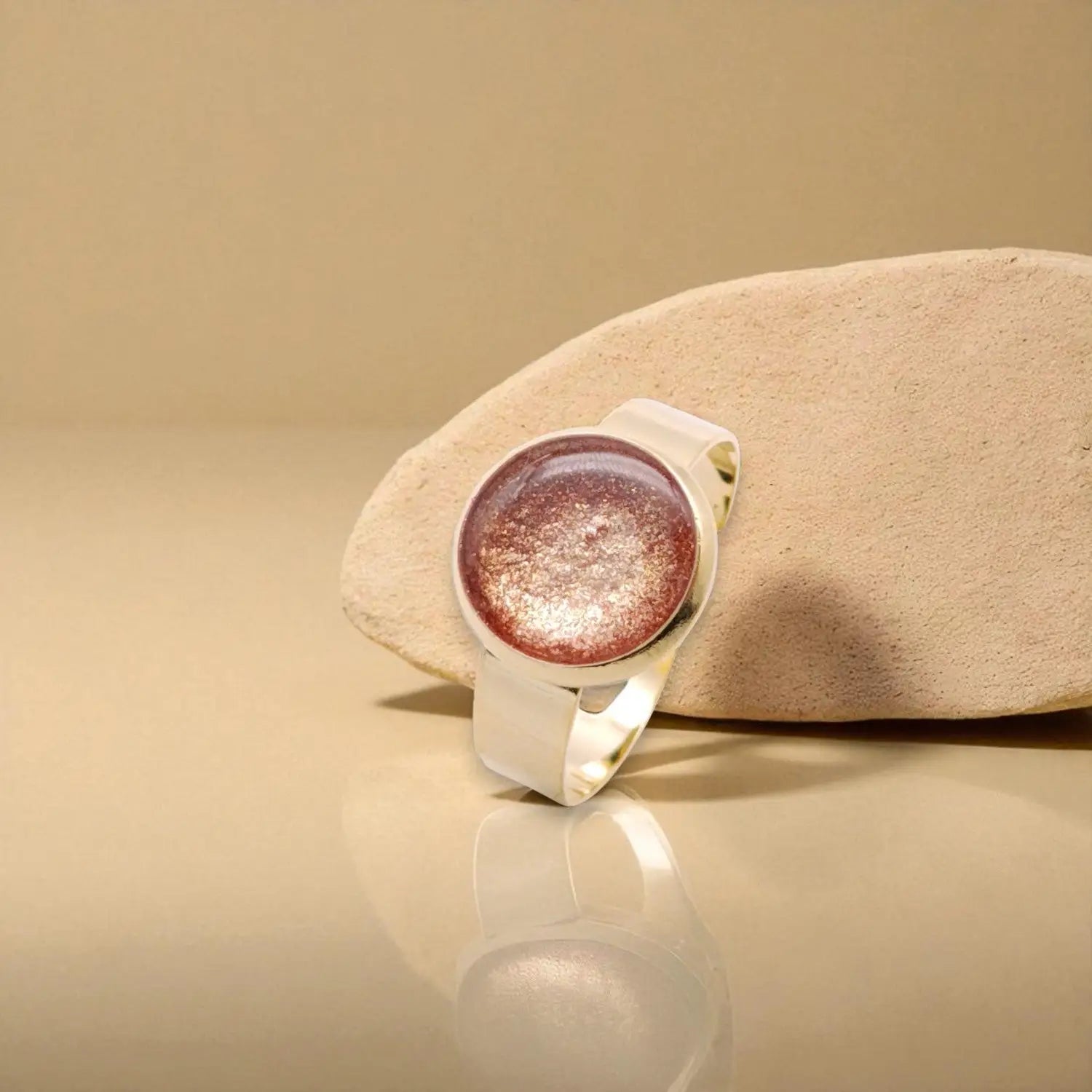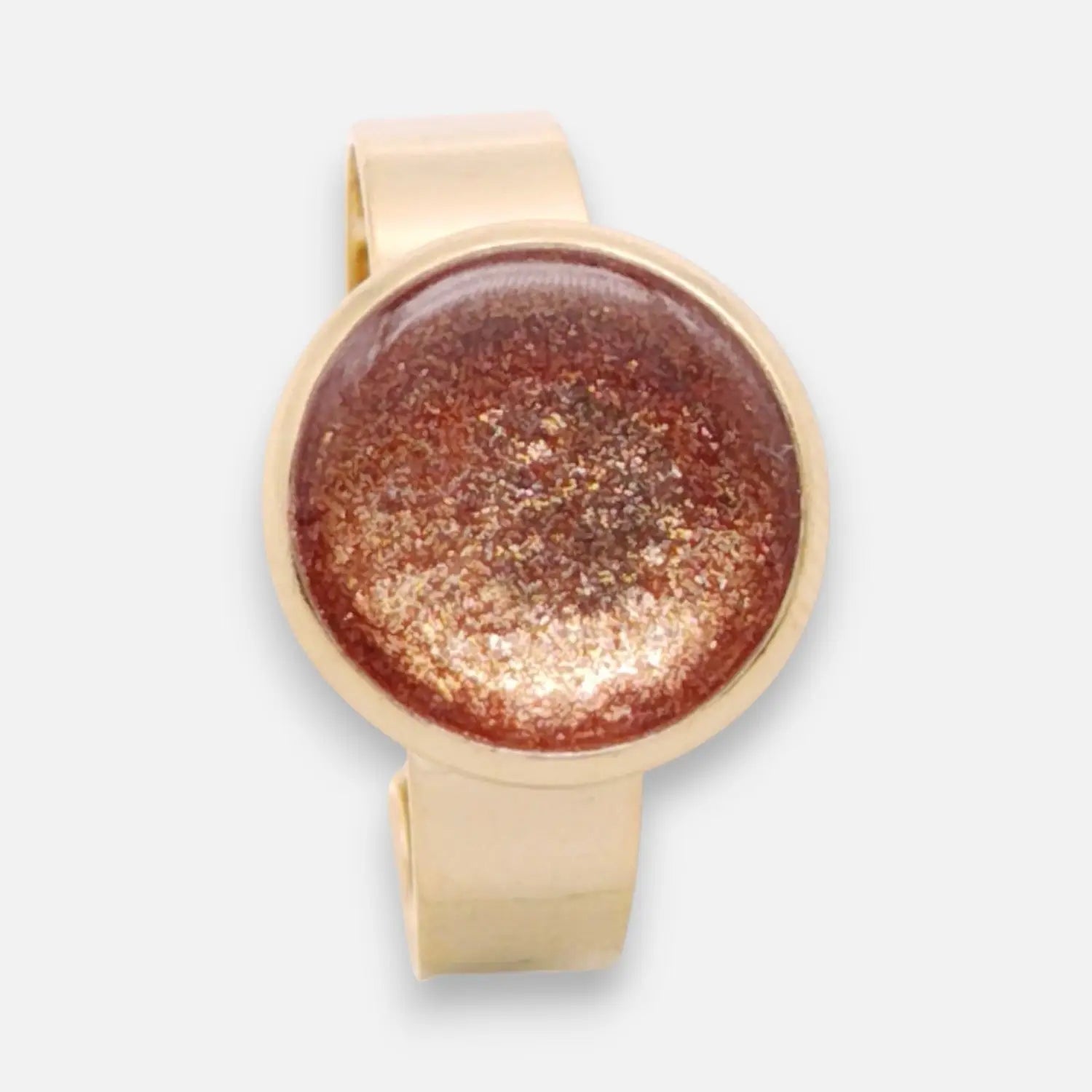 Bague réglable en acier inoxydable 304 plaqué or avec boule époxy de 10 mm dans les tons dorés.