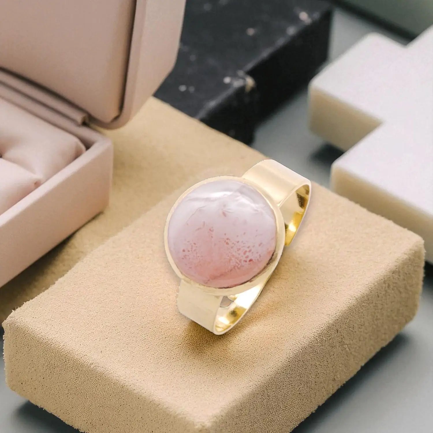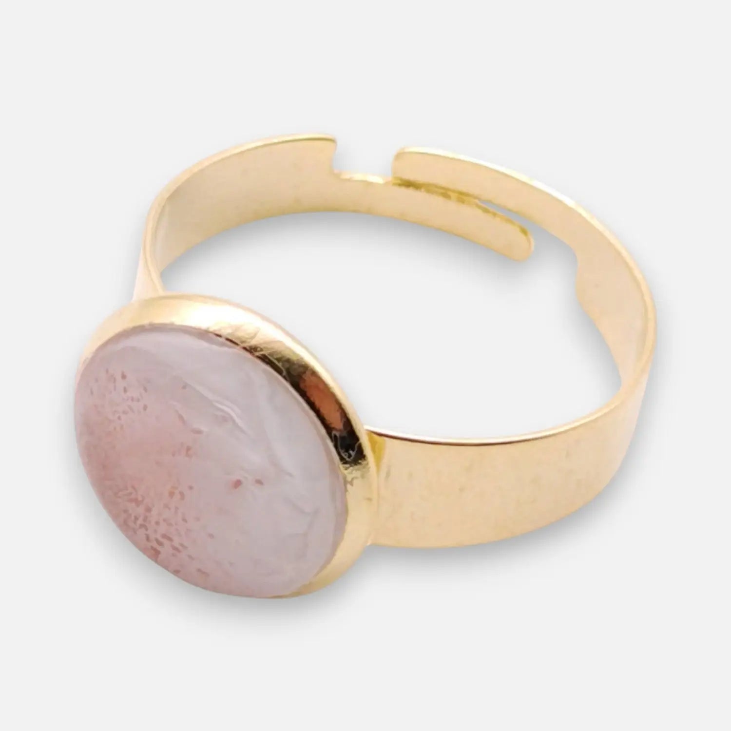 Bague réglable en acier inoxydable 304 plaqué or avec boule époxy rose/blanche de 10 mm.