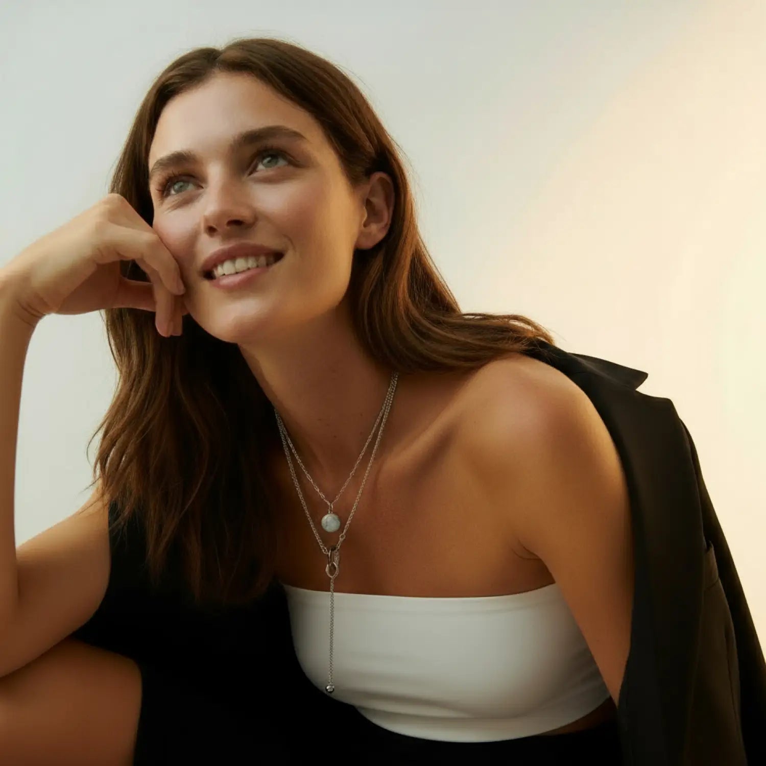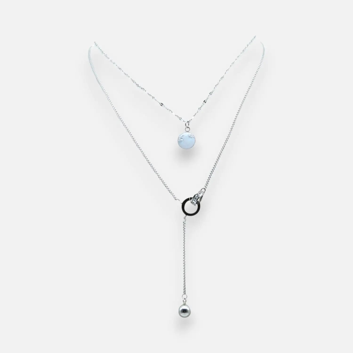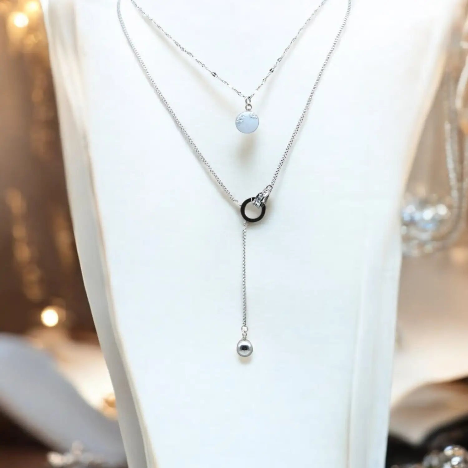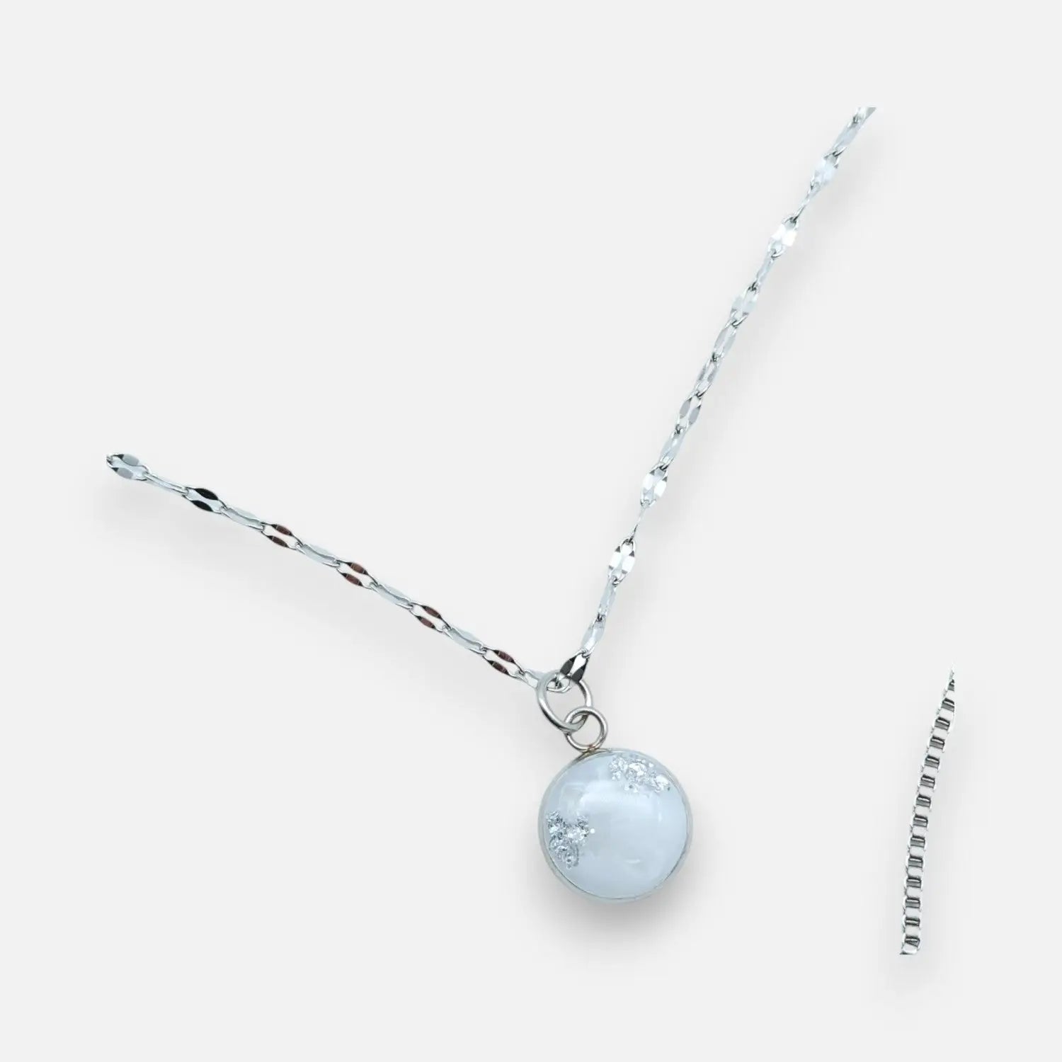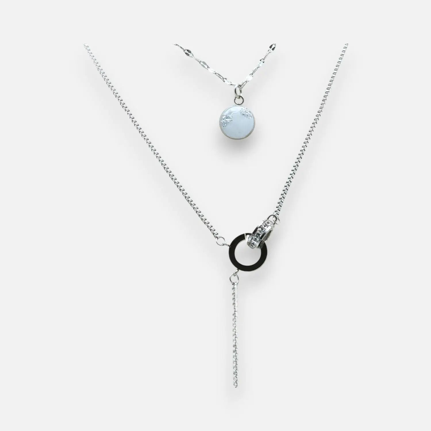 Chaîne en acier inoxydable à double rangée avec coque délicate en résine époxy blanche et argentée, avec rallonge de 5 cm.
