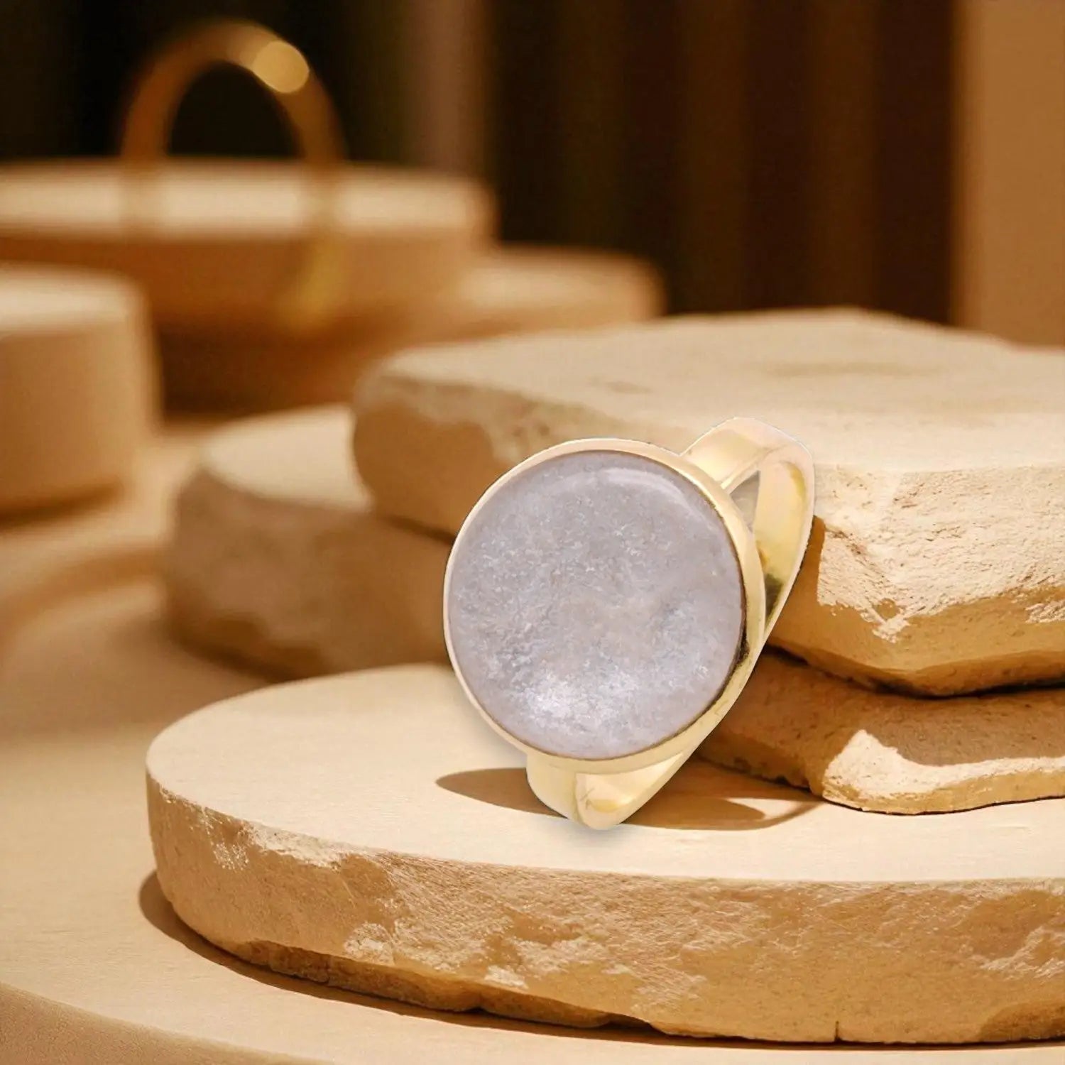 Bague réglable en acier inoxydable 304 plaqué or avec boule époxy de 12 mm dans les tons blancs.
