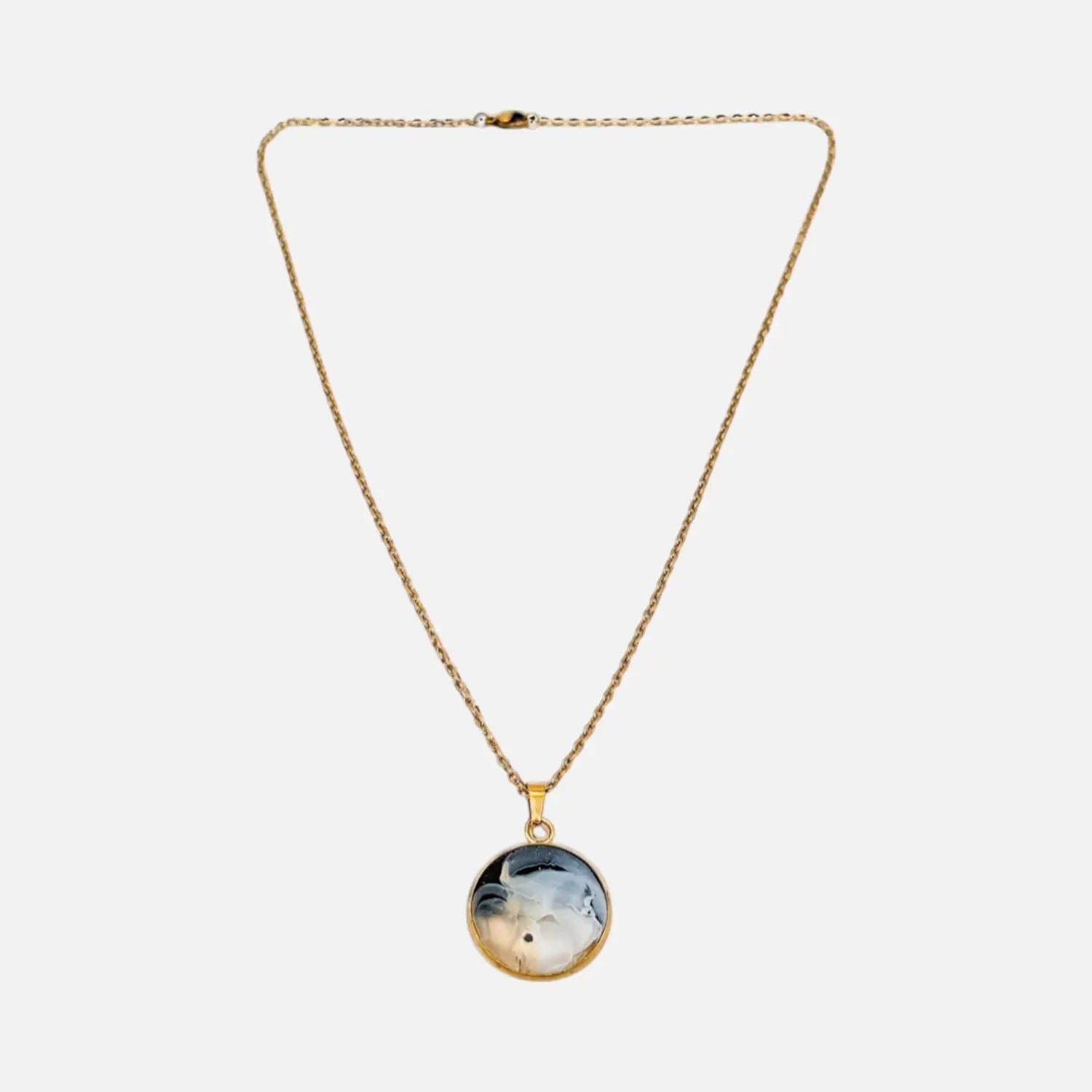 Ce superbe collier combine les couleurs blanc, noir et beige pour créer un look intemporel et élégant.