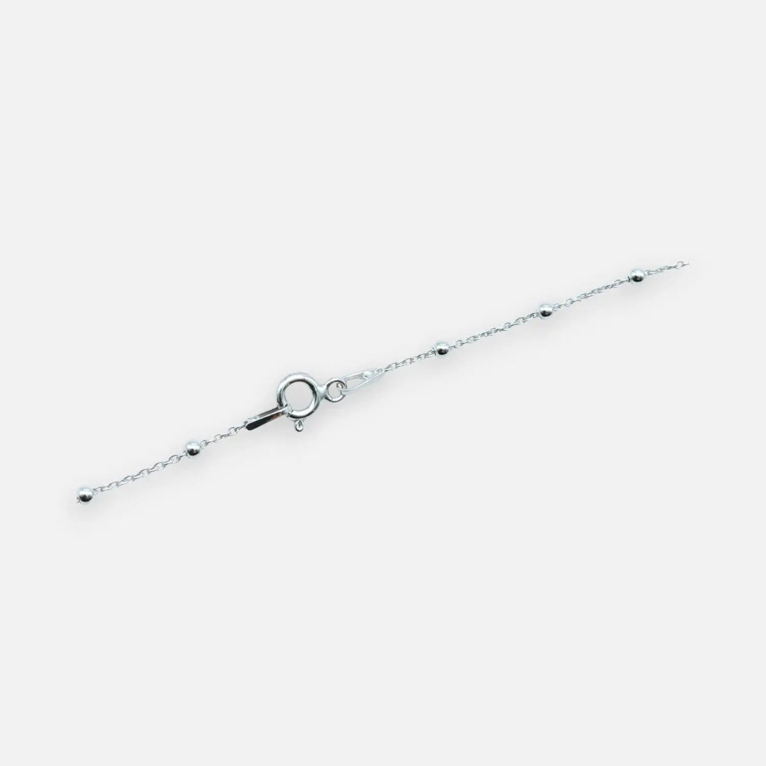 Chaîne d'ancre à billes rhodiée en argent 925 avec une fine coque en résine époxy dans des nuances bleu maritime, blanc et argent.