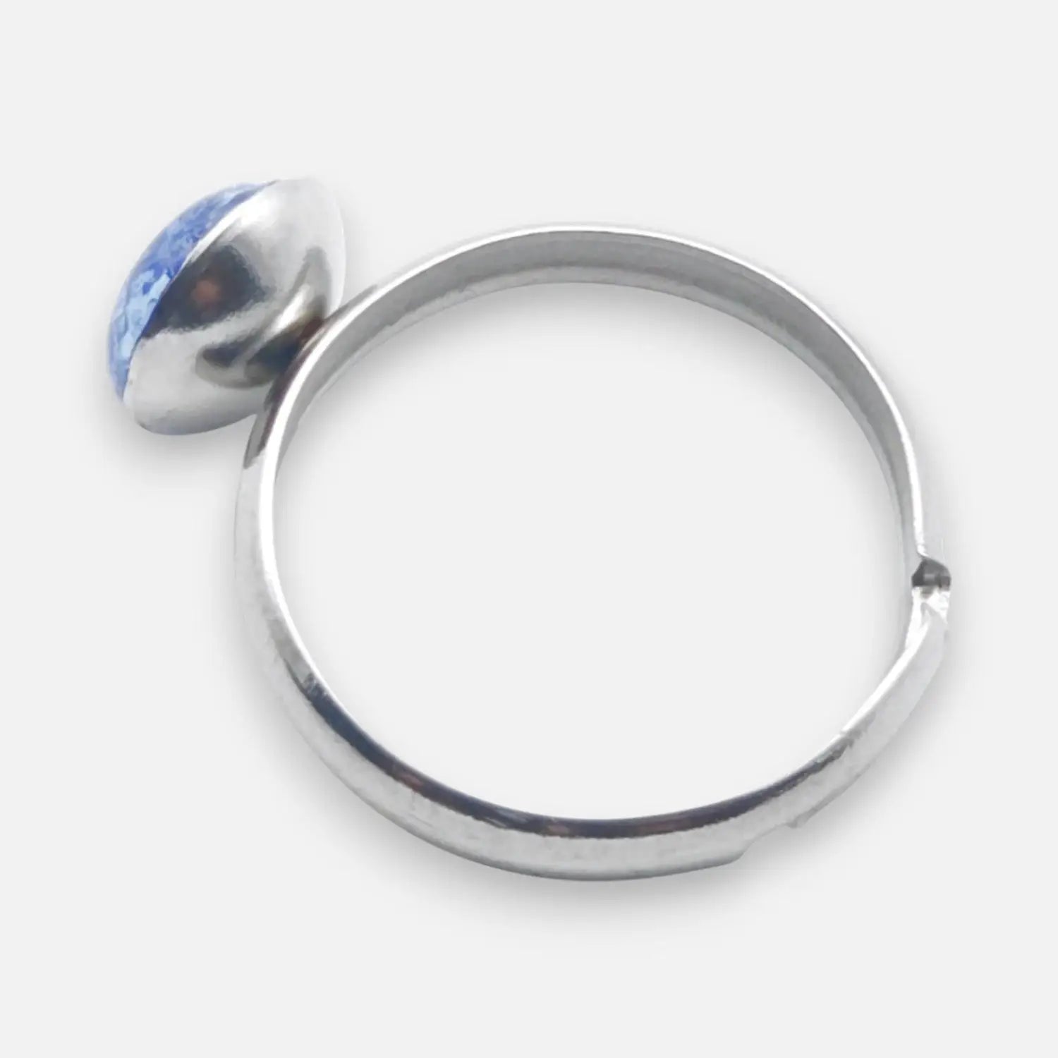 Bague réglable en acier inoxydable 304 (natif) avec coque époxy de 6 mm en bleu/argent.
