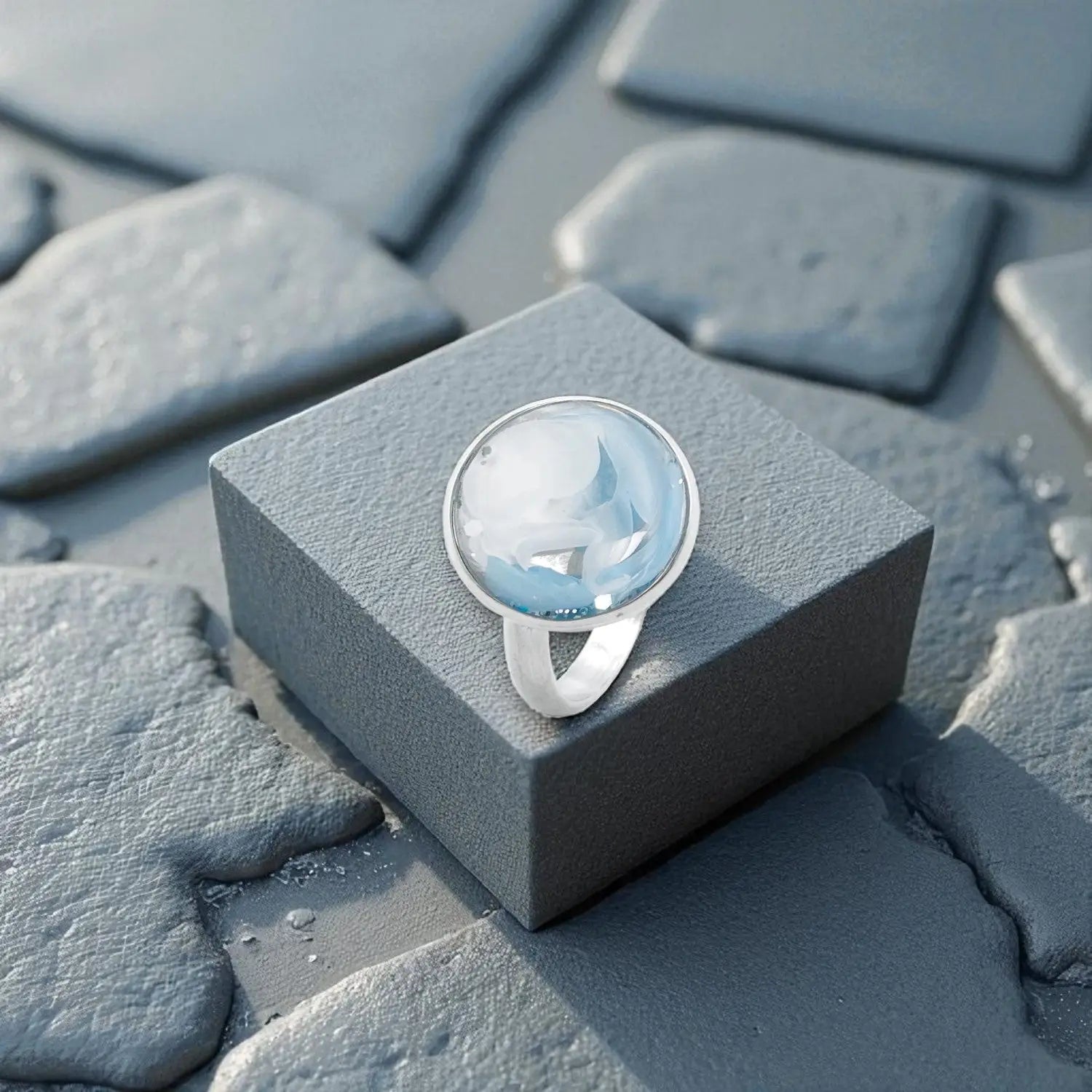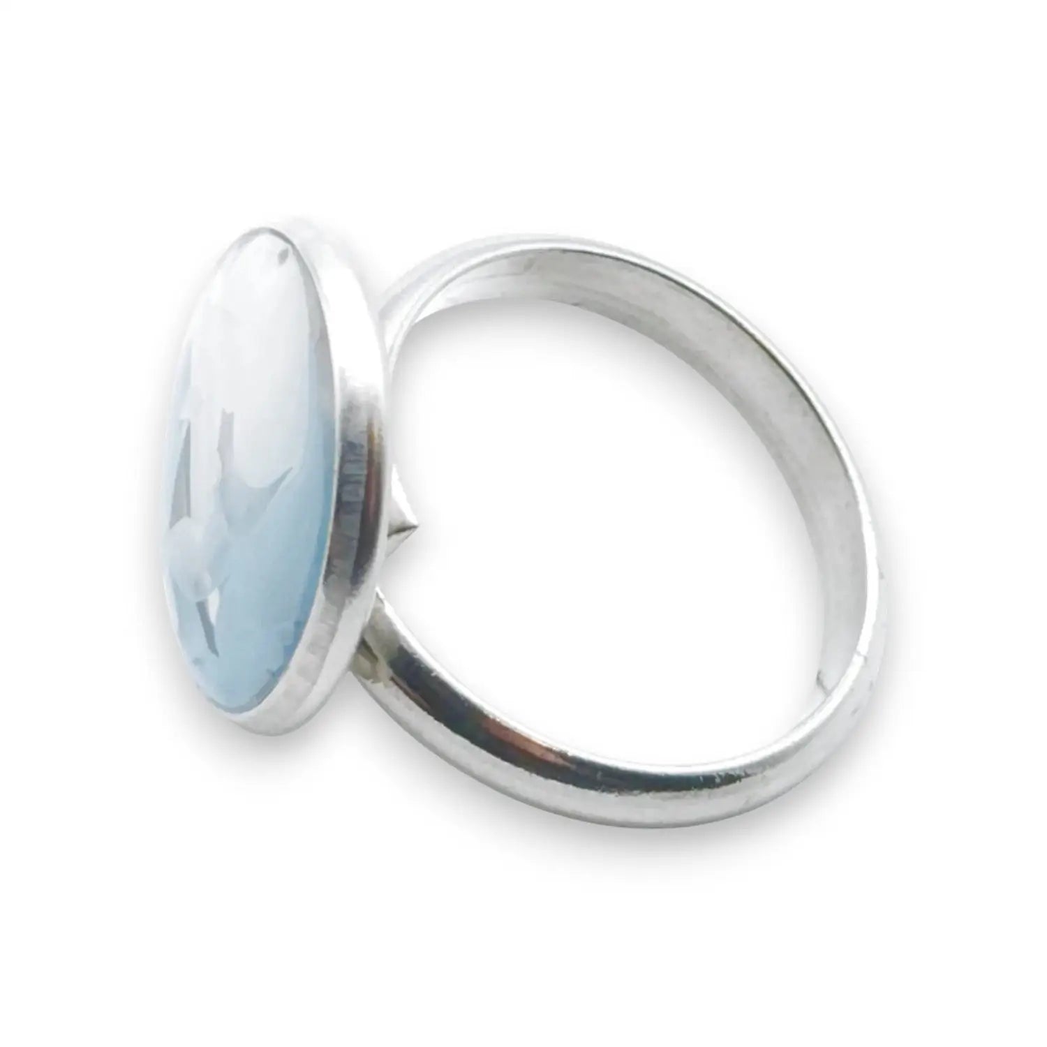 Bague réglable en acier inoxydable 304 (natif) avec coque époxy de 14 mm en blanc/bleu.