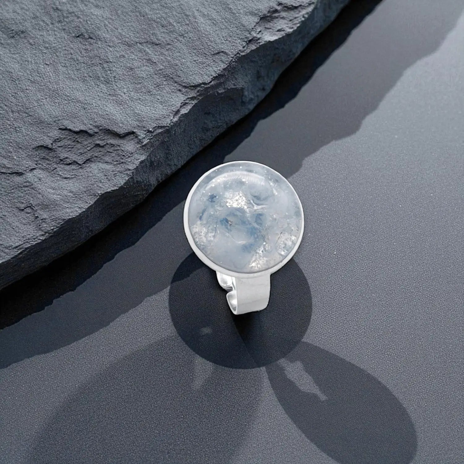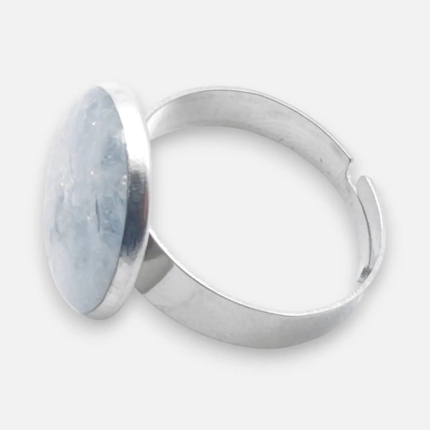 Bague réglable en acier inoxydable 304 (natif) avec coque époxy de 14 mm en blanc/bleu/translucide.