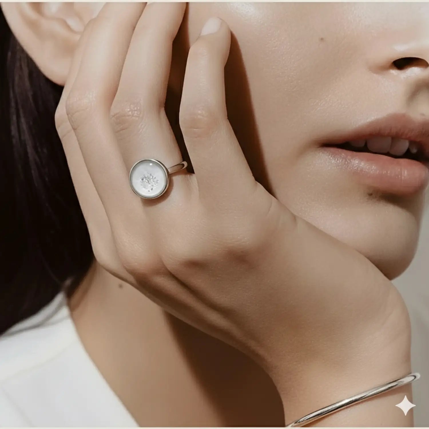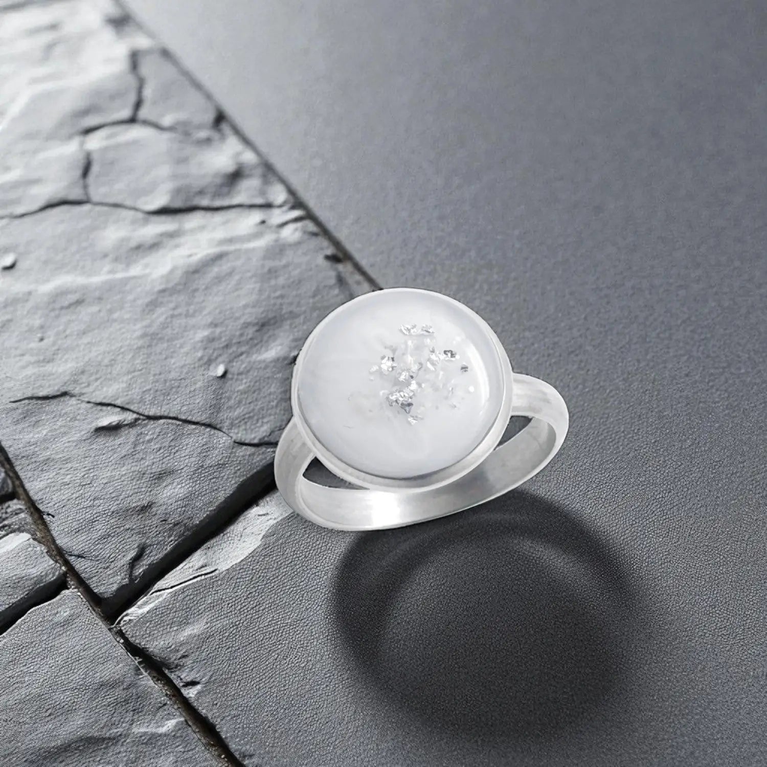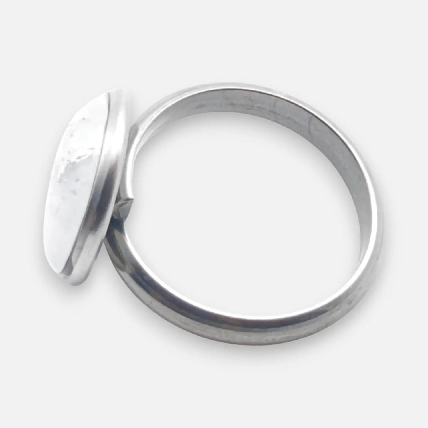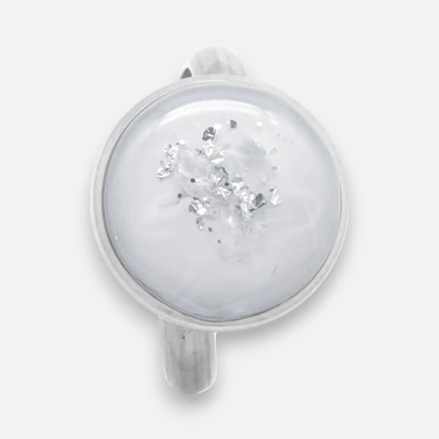 Bague réglable en acier inoxydable 304 (natif) avec coque époxy de 12 mm en blanc/argent.