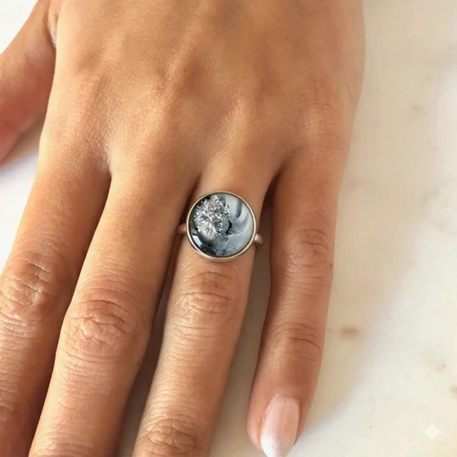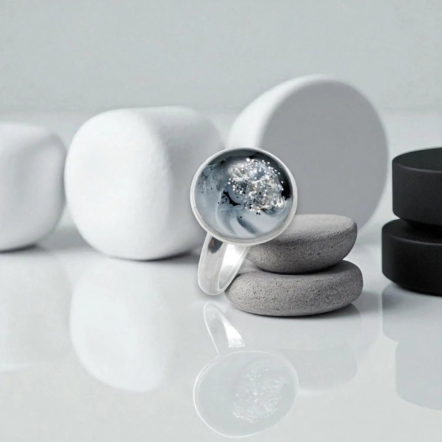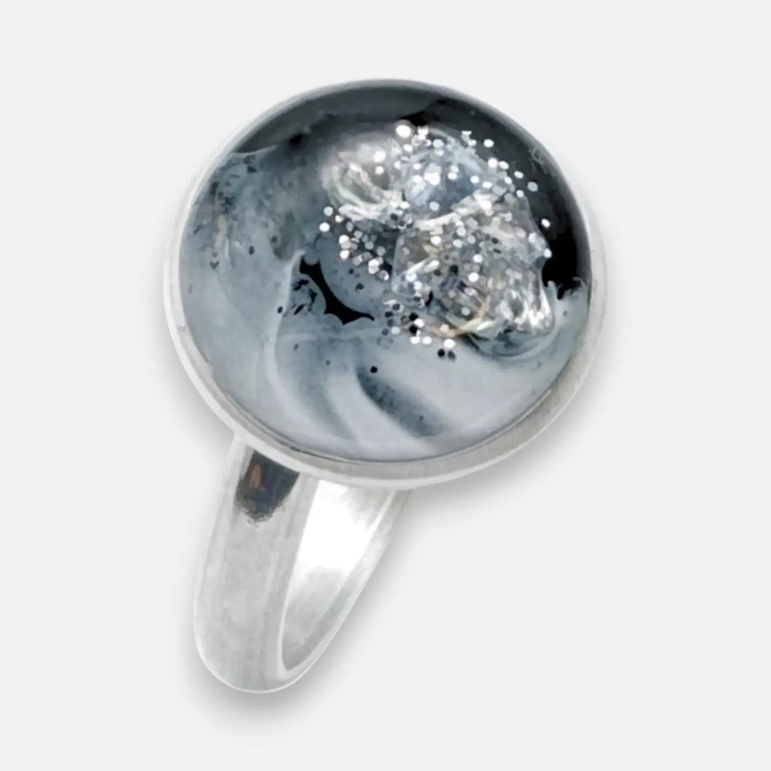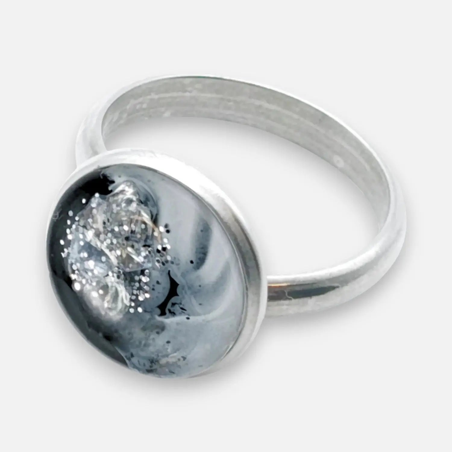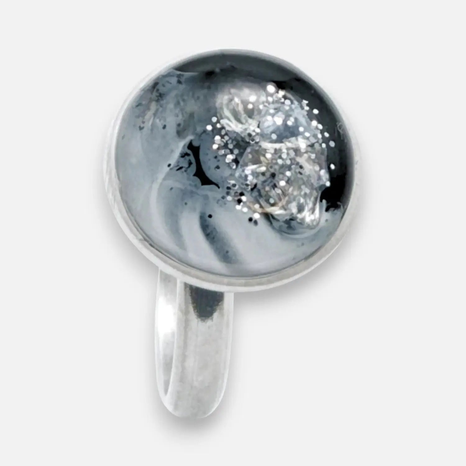 Bague réglable en acier inoxydable 304 (natif) avec coque époxy de 12 mm en blanc/noir/argent.