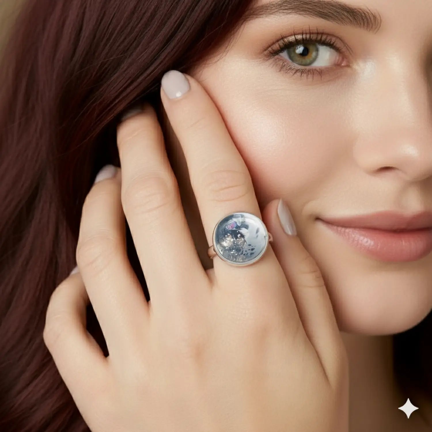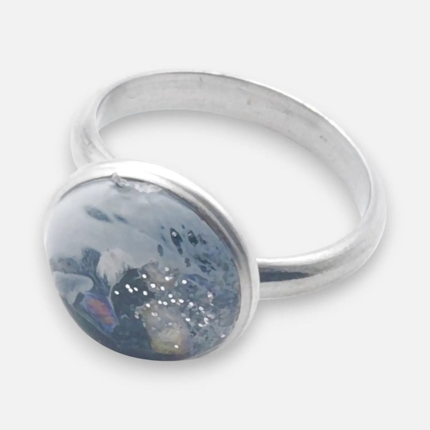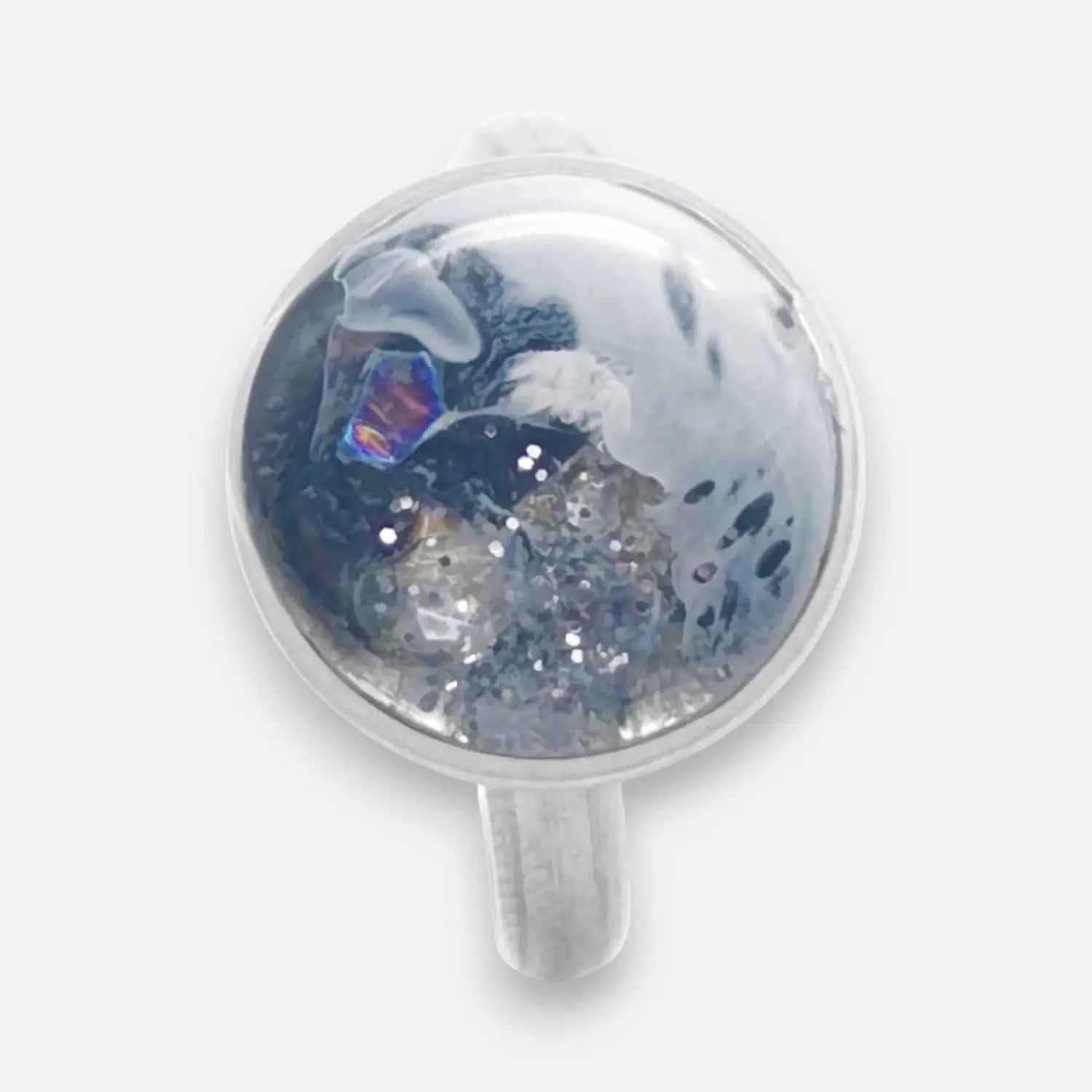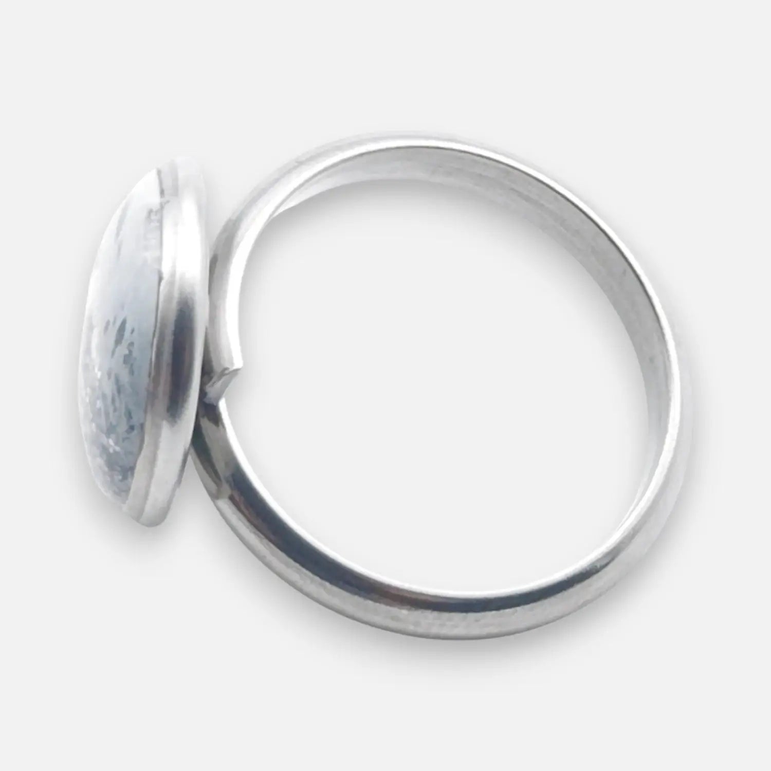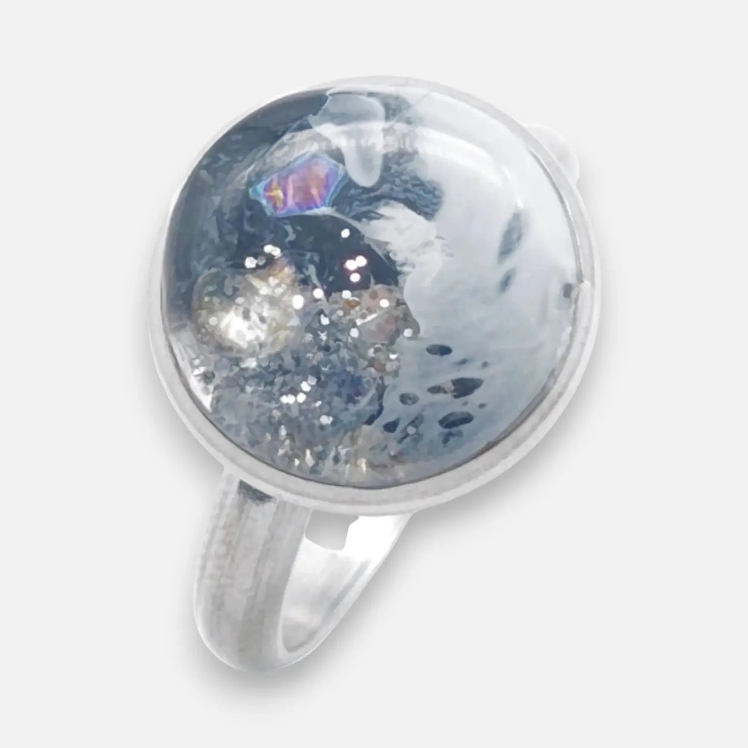 Bague réglable en acier inoxydable 304 (natif) avec coque époxy de 12 mm en blanc/noir/argent.