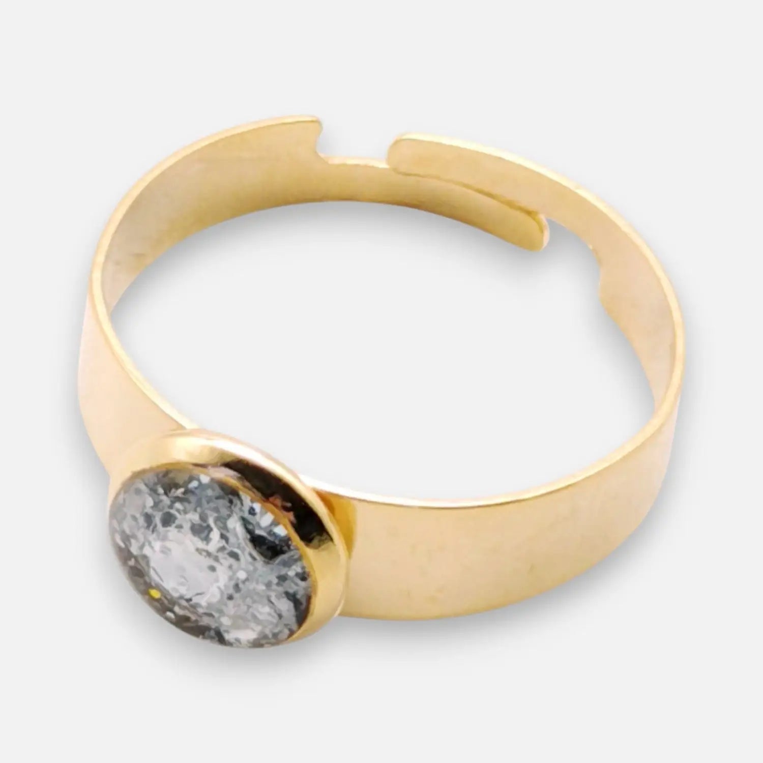 Bague réglable en acier inoxydable 304 plaqué or avec boule époxy de 6 mm dans les tons argentés.