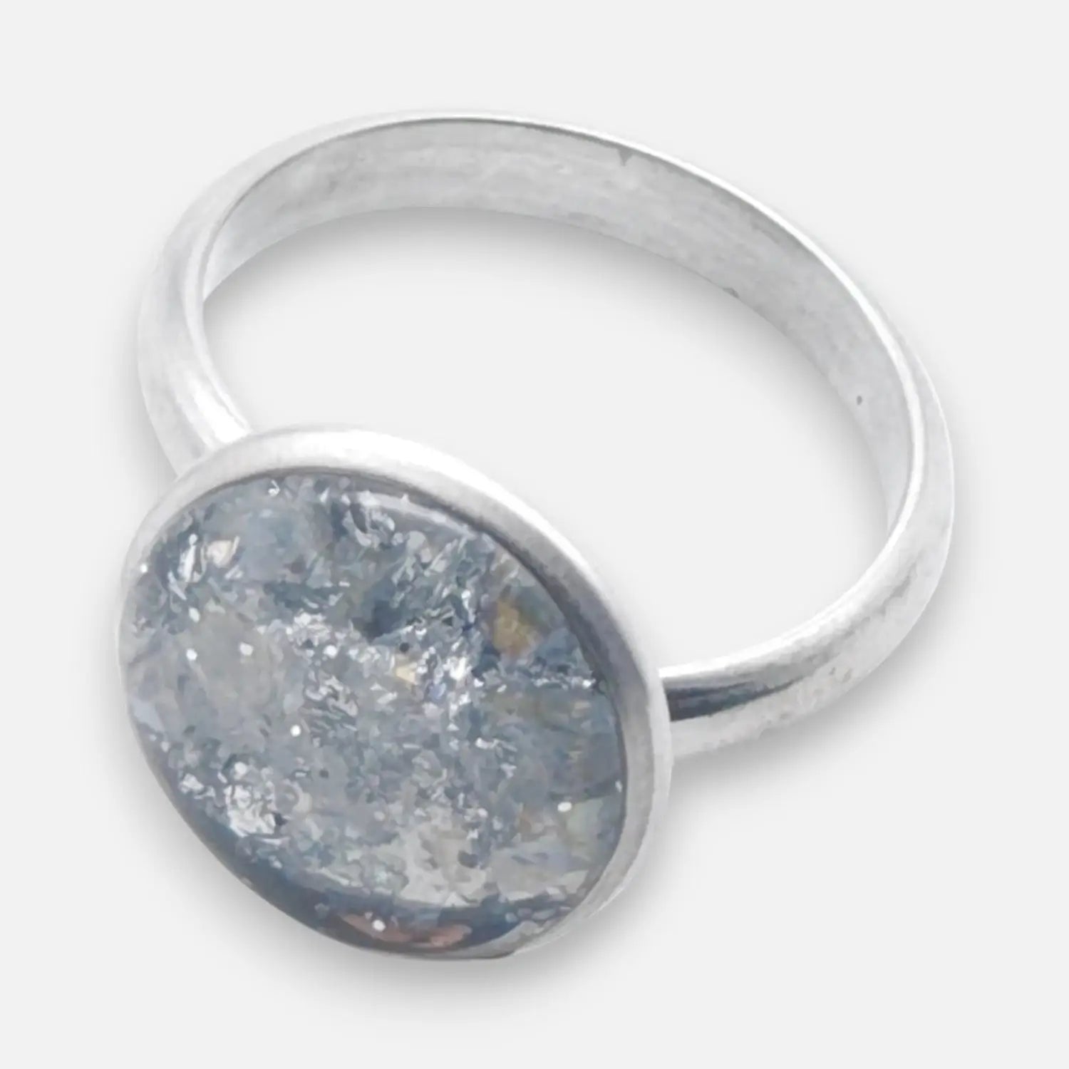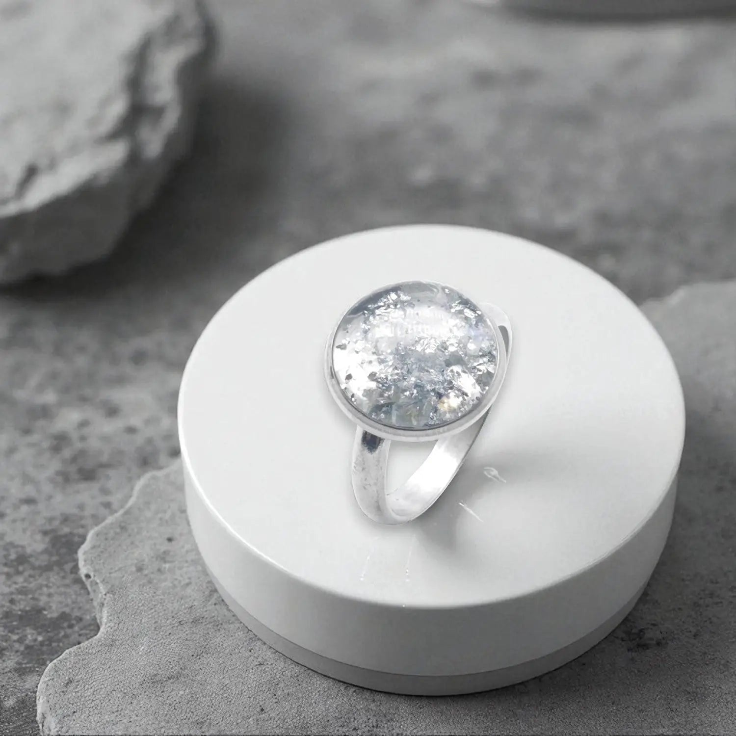 Bague réglable en acier inoxydable 304 (natif) avec coque époxy de 12 mm en argent/translucide.