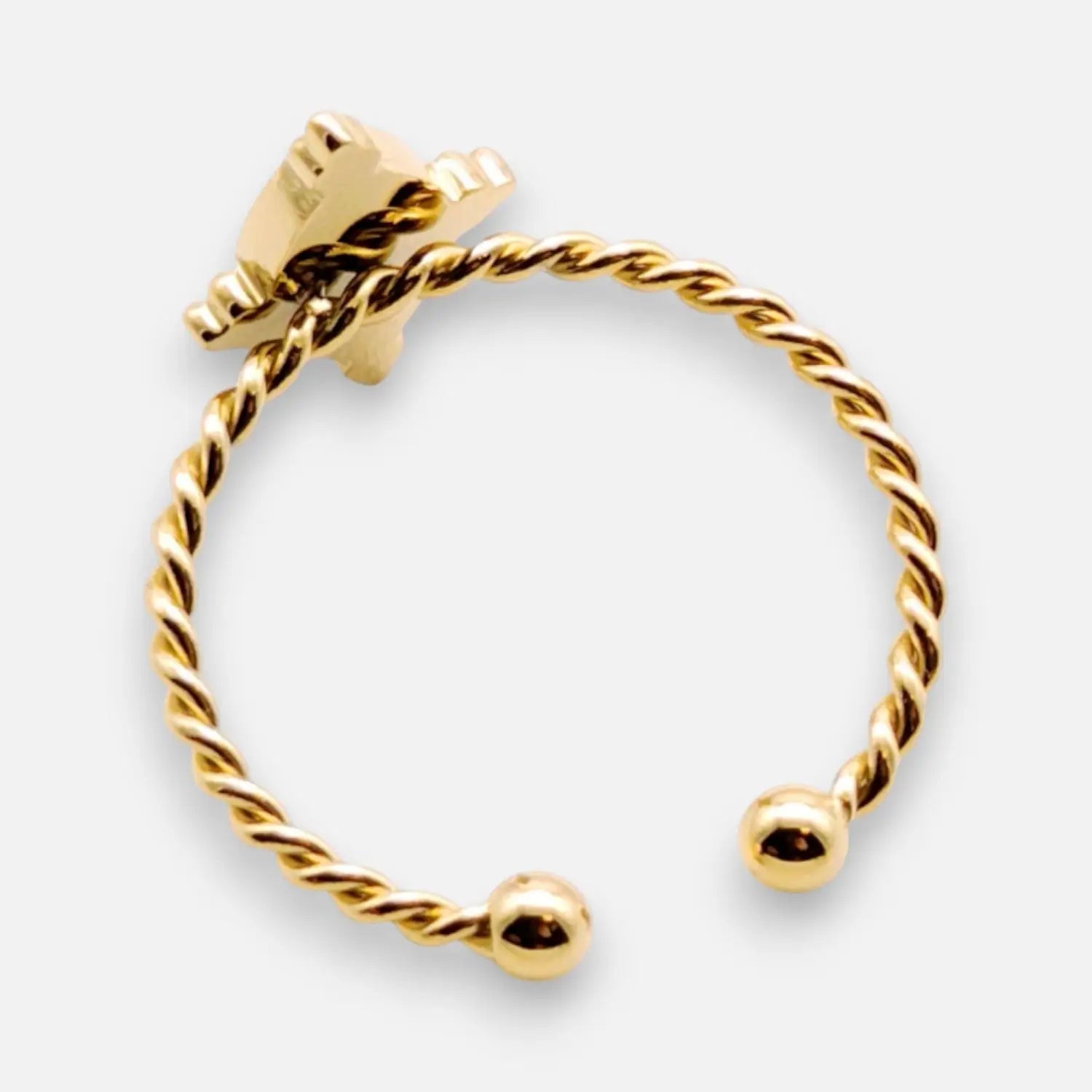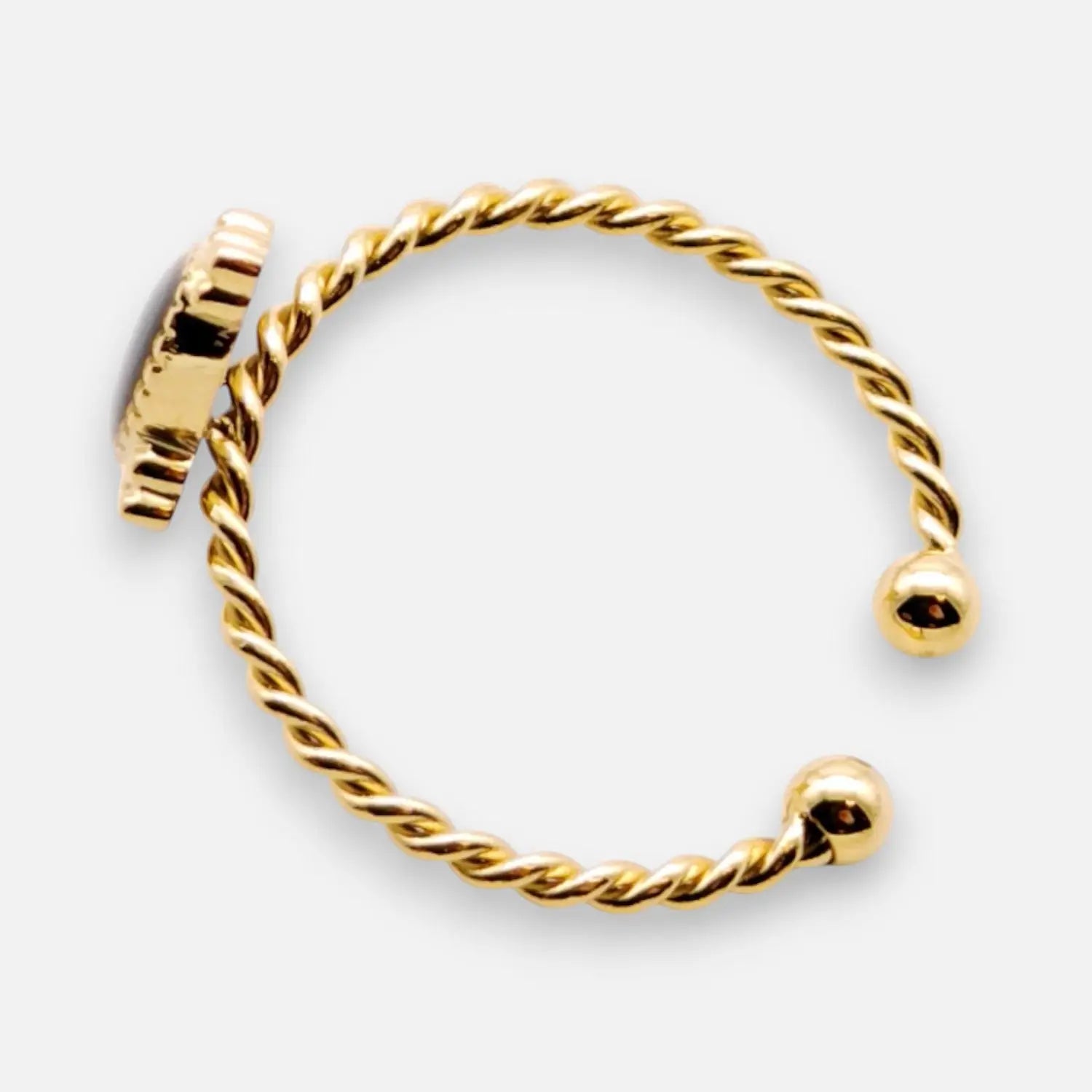 Bague réglable en acier inoxydable 304 plaqué or avec boule époxy violette de 4 mm.