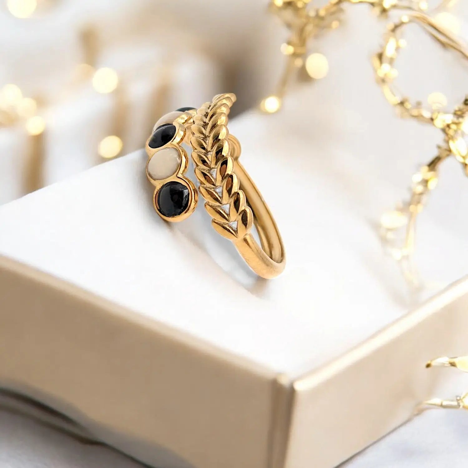 Beigetöne und Schwarz treffen auf Gold in diesem eleganten, verstellbaren Design.