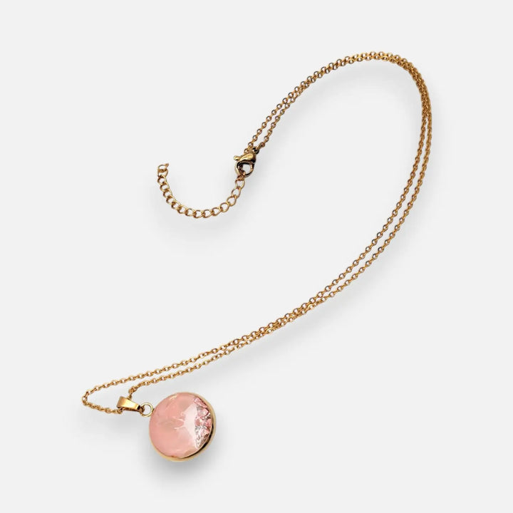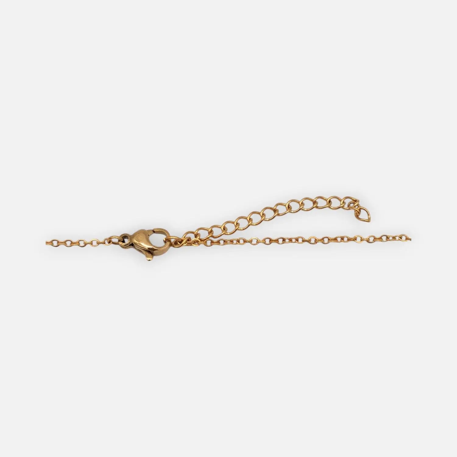 Diese Ankerkette mit einer 5 cm Verlängerung und rosa und weißen Tönen hat eine Epoxidschale mit einem Durchmesser von 16 mm und eine Kettenstärke von 1.5 mm. Hergestellt aus vergoldetem 304 Edelstahl. Länge der Halskette: 42 cm. Verschlussart: Karabinerschließe.