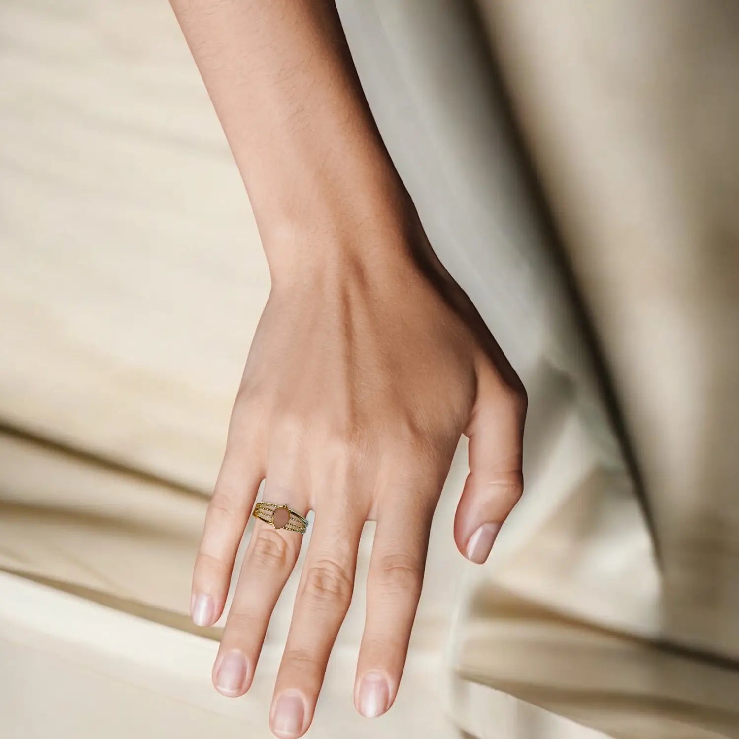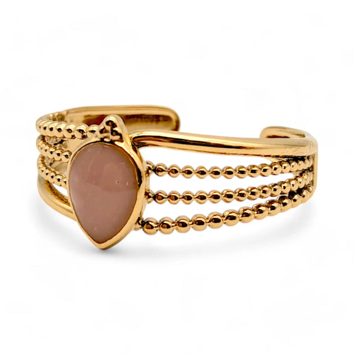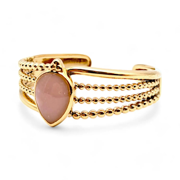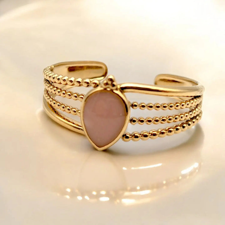 Mit zarten Rosatönen und einem verstellbaren Design verleiht dieser Ring jedem Outfit einen femininen Touch.