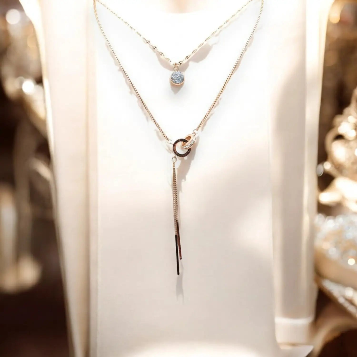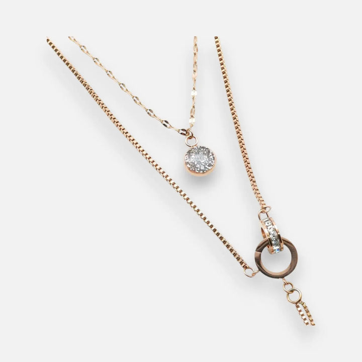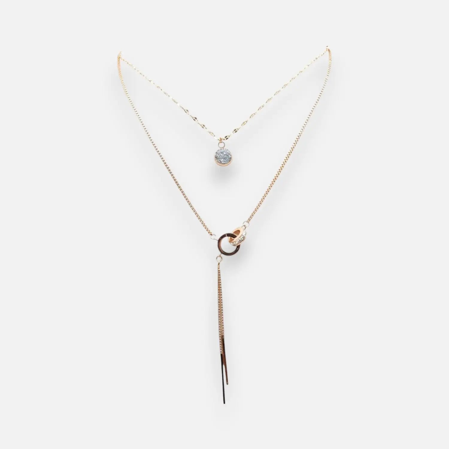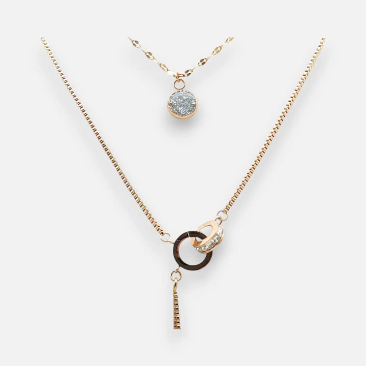 Moderne rosévergoldete Double-Layer-Kette mit feiner silberner Epoxidharz-Schale, inkl. 5 cm Verlängerung.